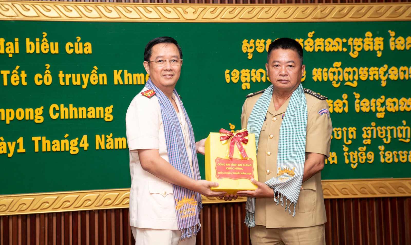 Thay mặt Tỉnh ủy, HĐND, UBND, Ủy ban MTTQ Việt Nam tỉnh và nhân dân tỉnh An Giang, đồng chí Trần Thị Thanh Hương chúc ngài Siêu Rung, Chủ tịch Hội đồng tỉnh Kampong Chhnang và ngài Sun So Van Na Rich, Tỉnh trưởng tỉnh Kampong Chhnang cùng cán bộ, lực lượng vũ trang và nhân dân tỉnh Kampong Chhnang đón Chôl Chnăm Thmây dồi dào sức khỏe, hạnh phúc, hoàn thành xuất sắc nhiệm vụ được giao; chúc chính quyền và nhân dân tỉnh Kampong Chhnang đạt được những thành tựu lớn hơn nữa trong công cuộc xây dựng và phát triển; chúc tình đoàn kết, hữu nghị truyền thống và hợp tác tốt đẹp giữa hai tỉnh An Giang và Kampong Chhnang mãi mãi bền vững.