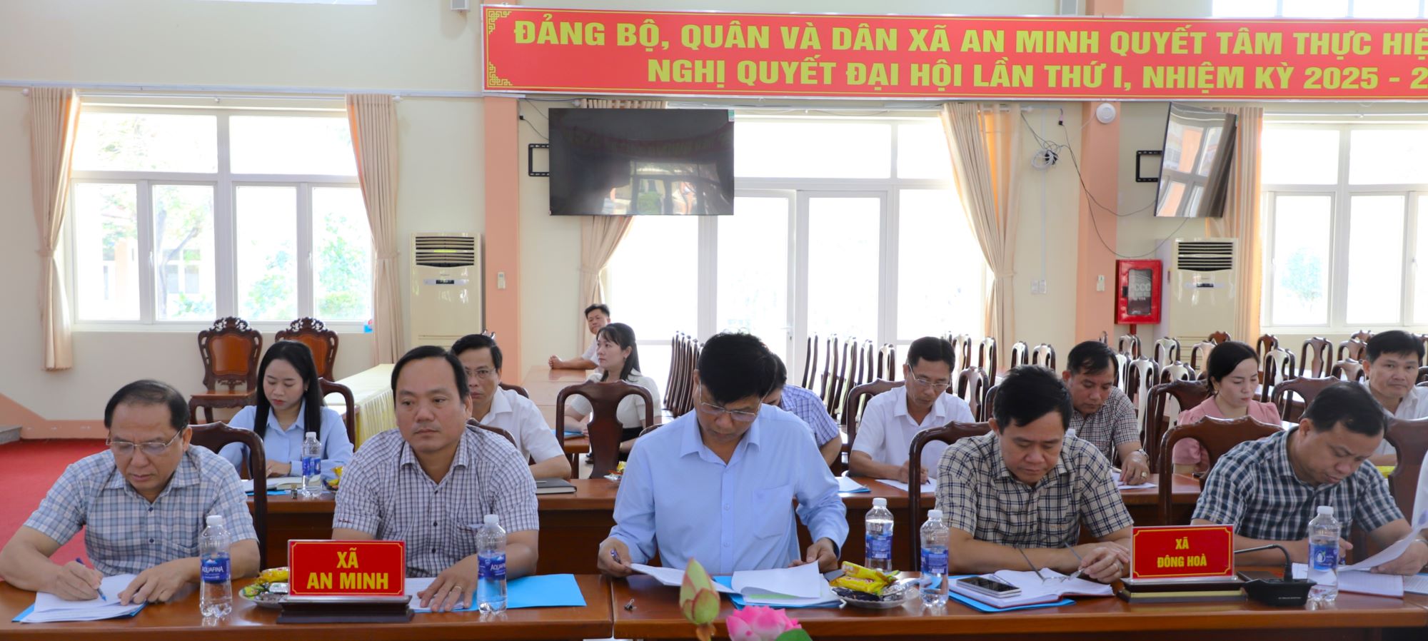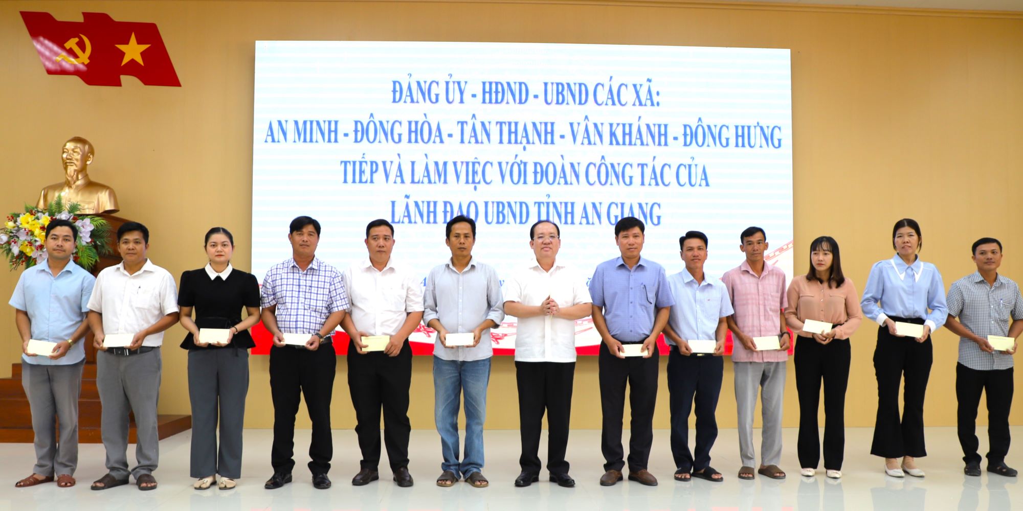 Tại buổi làm việc, Lãnh đạo 05 xã: An Minh, Đông Hòa, Đông Hưng, Vân Khánh, Tân Thạnh báo cáo tình hình thực hiện các chủ trương, nghị quyết, chỉ đạo của Tỉnh ủy, UBND tỉnh về triển khai nhiệm vụ năm 2026 đều được Ban thường vụ Đảng ủy, UBND xã cụ thể hóa bằng Chương trình, Kế hoạch thực hiện tại địa phương và triển khai rộng rãi đến cán bộ, đảng viên, công chức, viên chức và nhân dân để tổ chức thực hiện nhằm mục tiêu, nhiệm vụ chính trị, kinh tế, văn hóa trên địa bàn xã đạt kế hoạch đề ra.