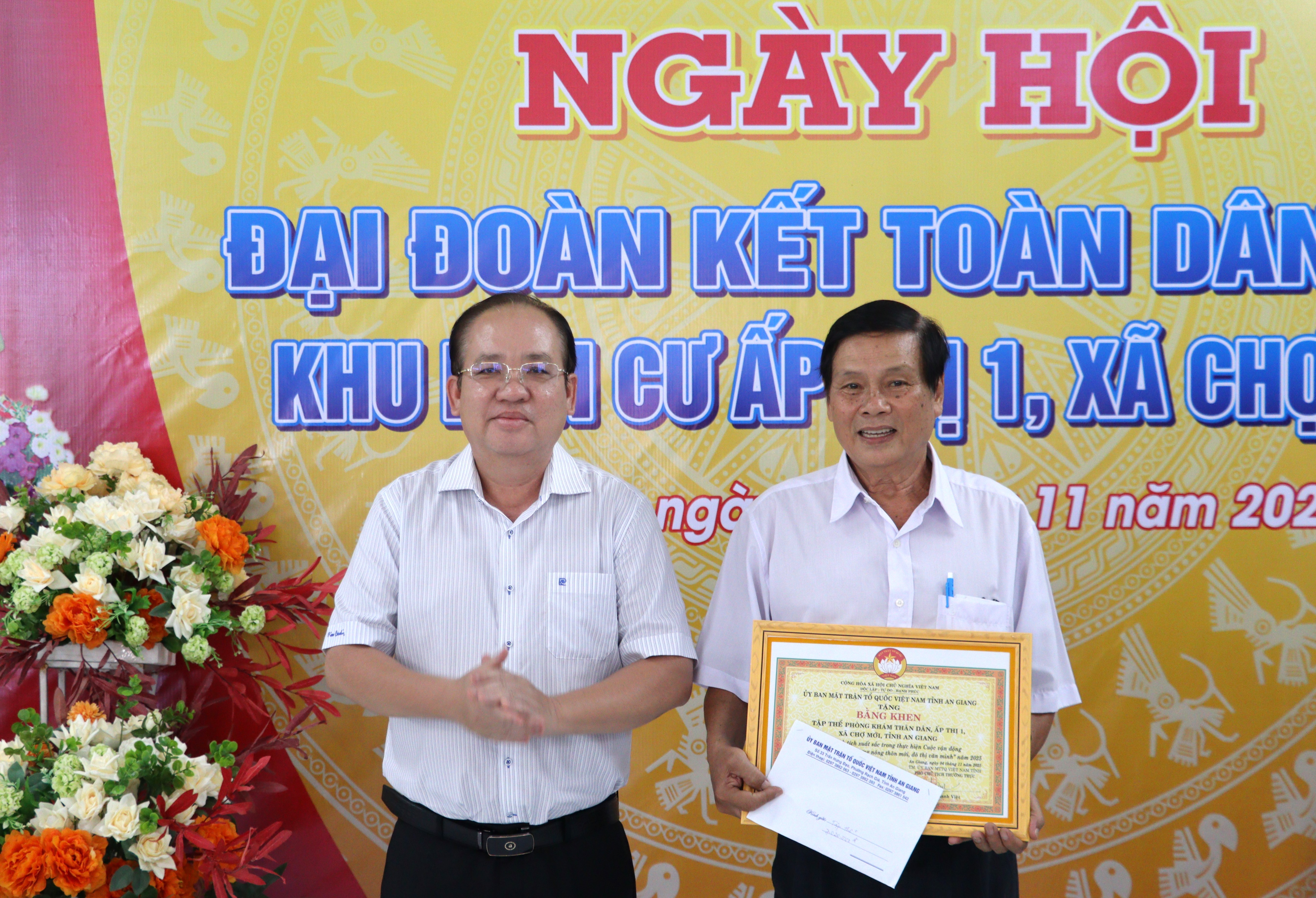 Dịp này, Ủy ban Mặt trận Tổ quốc Việt Nam tỉnh An Giang tặng bằng khen cho 1 tập thể, 1 cá nhân đã có thành tích xuất sắc trong thực hiện Cuộc vận động “Toàn dân đoàn kết xây dựng nông thôn mới, đô thị văn minh” năm 2025; UBND xã Chợ Mới tặng giấy khen cho 2 tập thể, 10 cá nhân có thành tích xuất sắc trong thực hiện phong trào xây dựng nếp sống văn minh, gia đình văn hoá trong cuộc vận động “Toàn dân đoàn kết xây dựng nông thôn mới, đô thị văn minh” ấp Thị 1 năm 2025.