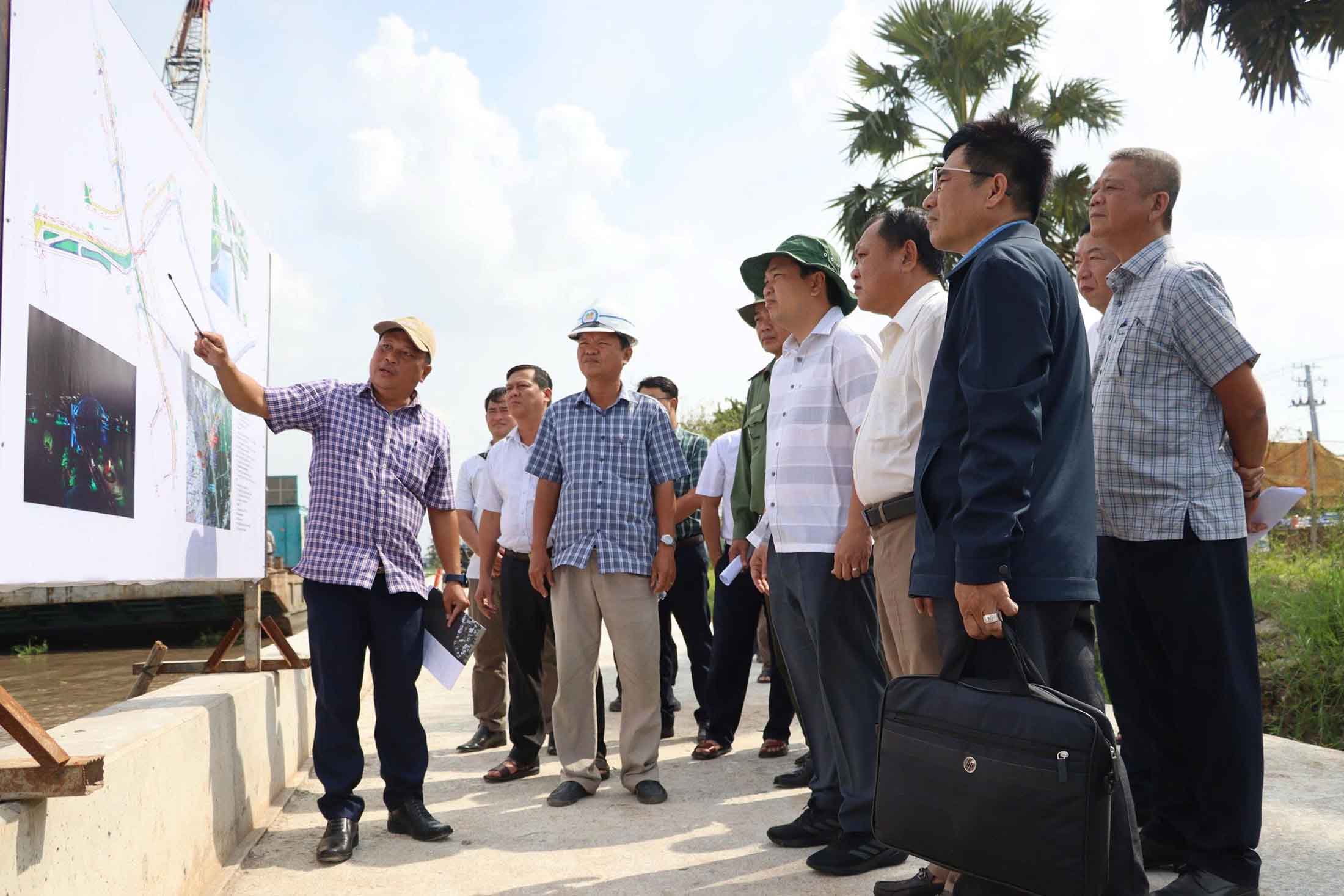 (Cổng TTĐT tỉnh AG)-Chiều 12/12, Phó Chủ tịch UBND tỉnh Lê Trung Hồ cùng đoàn công tác đến kiểm tra tiến độ thi công các dự án cầu Giải Phóng 9, cầu Kênh 3, đường kênh Rạch Giá - Long Xuyên phía bờ nam và các cầu trên tuyến thuộc địa bàn huyện Tân Hiệp, tỉnh Kiên Giang (cũ).