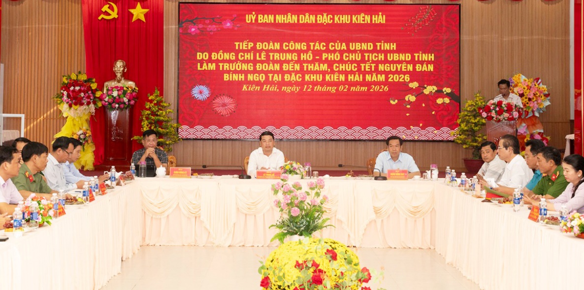 (Cổng TTĐT tỉnh AG)- Ngày 12/02, đoàn công tác của UBND tỉnh An Giang do Phó Chủ tịch UBND tỉnh Lê Trung Hồ làm Trưởng đoàn đến thăm, chúc Tết Nguyên đán Bính Ngọ 2026 tại đặc khu Kiên Hải.