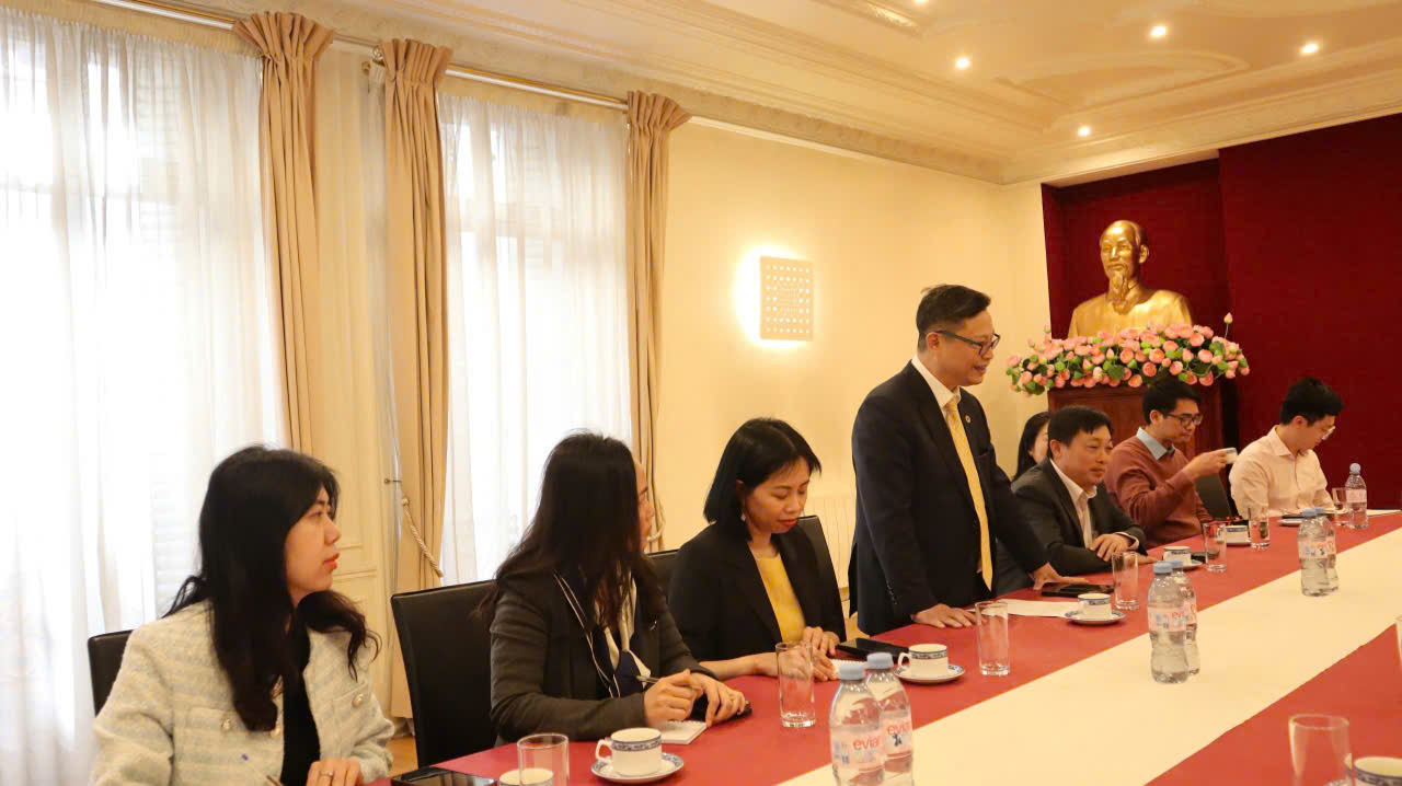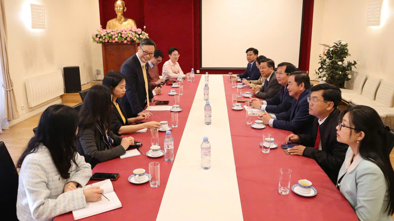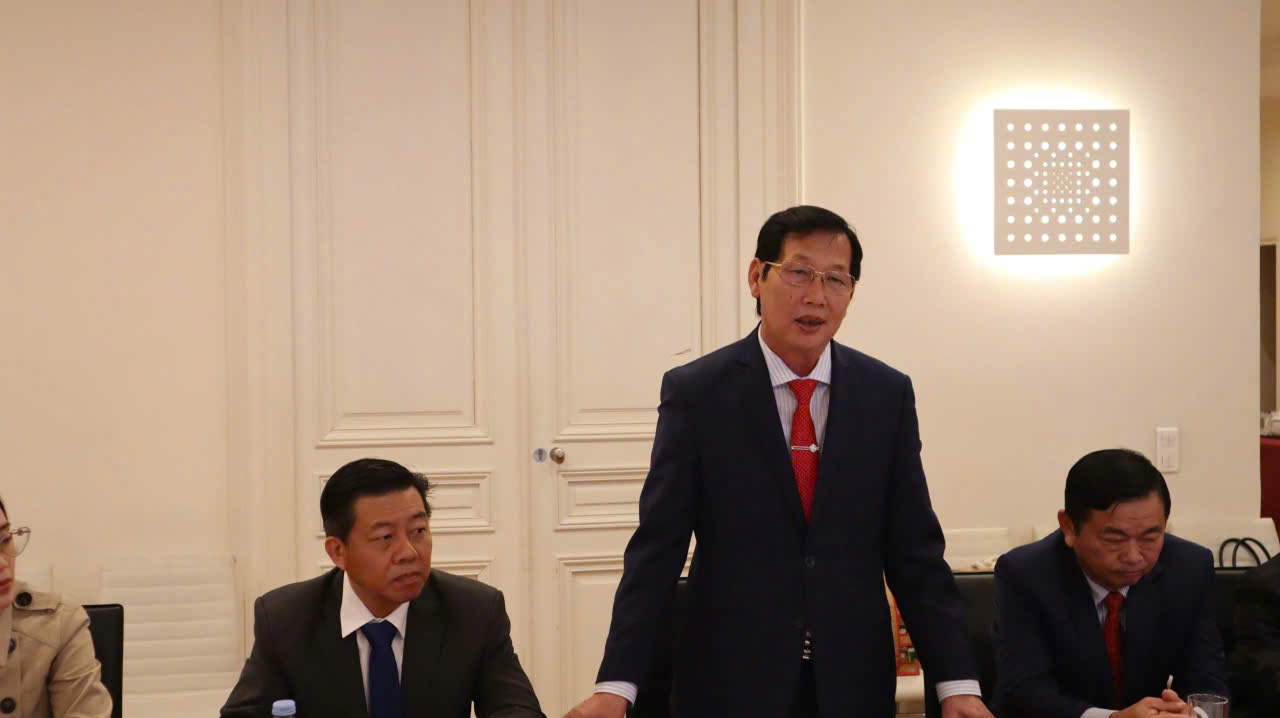 Phát biểu tại buổi chào xã giao, Đại sứ đặc mệnh toàn quyền Việt Nam tại Pháp Trịnh Đức Hải bày tỏ sự phấn khởi và gửi lời chào đoàn công tác tỉnh An Giang đã sang thăm Đại sứ quán Việt Nam tại Pháp.