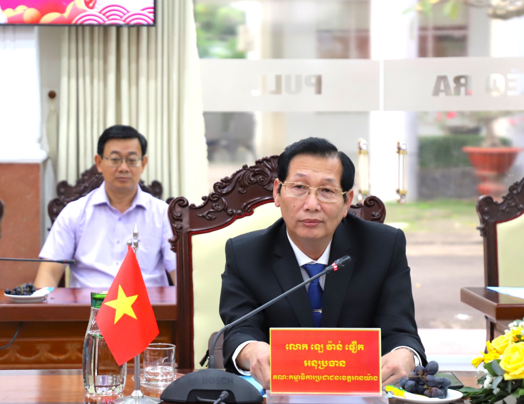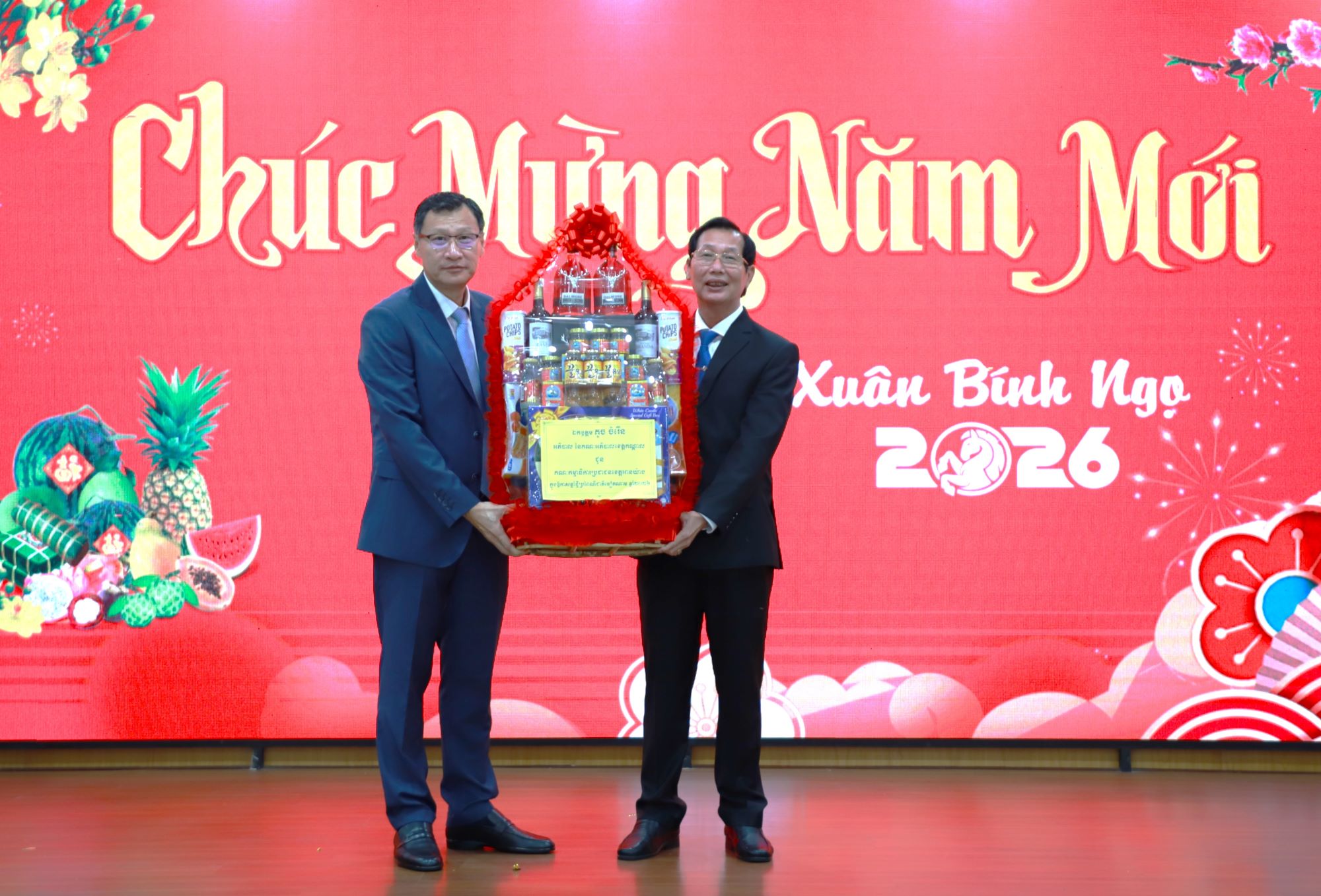 Nhân dịp Tết Nguyên đán Bính Ngọ năm 2026 của dân tộc Việt Nam, Phó Tỉnh trưởng tỉnh Kandal Nut Puthdara chúc mừng Lãnh đạo tỉnh, lực lượng vũ trang và nhân dân tỉnh An Giang đón mùa Xuân mới dồi dào sức khỏe, hạnh phúc, thịnh vượng và đạt được nhiều thành công. Qua đây, Phó Tỉnh trưởng tỉnh Kandal cũng đã thông tin về những thành tựu kinh tế - xã hội ấn tượng của tỉnh Kandal trong năm 2025, nổi bật là tốc độ tăng trưởng kinh tế, hạ tầng giao thông của tỉnh, nhất là việc đầu tư sân bay quốc tế. Bên cạnh đó, công tác đảm bảo an ninh trật tự, phòng chống tội phạm được tăng cường đã tạo môi trường ổn định cho người dân và doanh nghiệp.