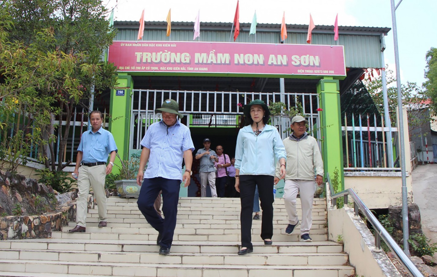 Theo đó, đoàn khảo sát tại Trường Tiểu học và THCS Nam Du và điểm Trạm Y tế Nam Du (trên đảo Hòn Ngang); Trường Tiểu học An Sơn, Trường THPT An Sơn, Trường Mầm non An Sơn, điểm Trạm y tế An Sơn (trên đảo Củ Tron) và Trường THPT Lại Sơn, Trường Tiểu học Trần Quốc Toản, Trường Mầm non Sao Mai, Trạm Y tế đặc khu Kiên Hải (trên đảo Lại Sơn).