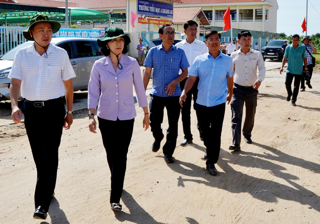 (Cổng TTĐT tỉnh AG)- Ngày 22/10, Phó Chủ tịch UBND tỉnh An Giang Nguyễn Thị Minh Thúy dẫn đầu đoàn công tác tỉnh khảo sát thực tế vị trí đầu tư dự án xây dựng trường học tại các xã biên giới: Giang Thành, Vĩnh Gia và Khánh Bình.
