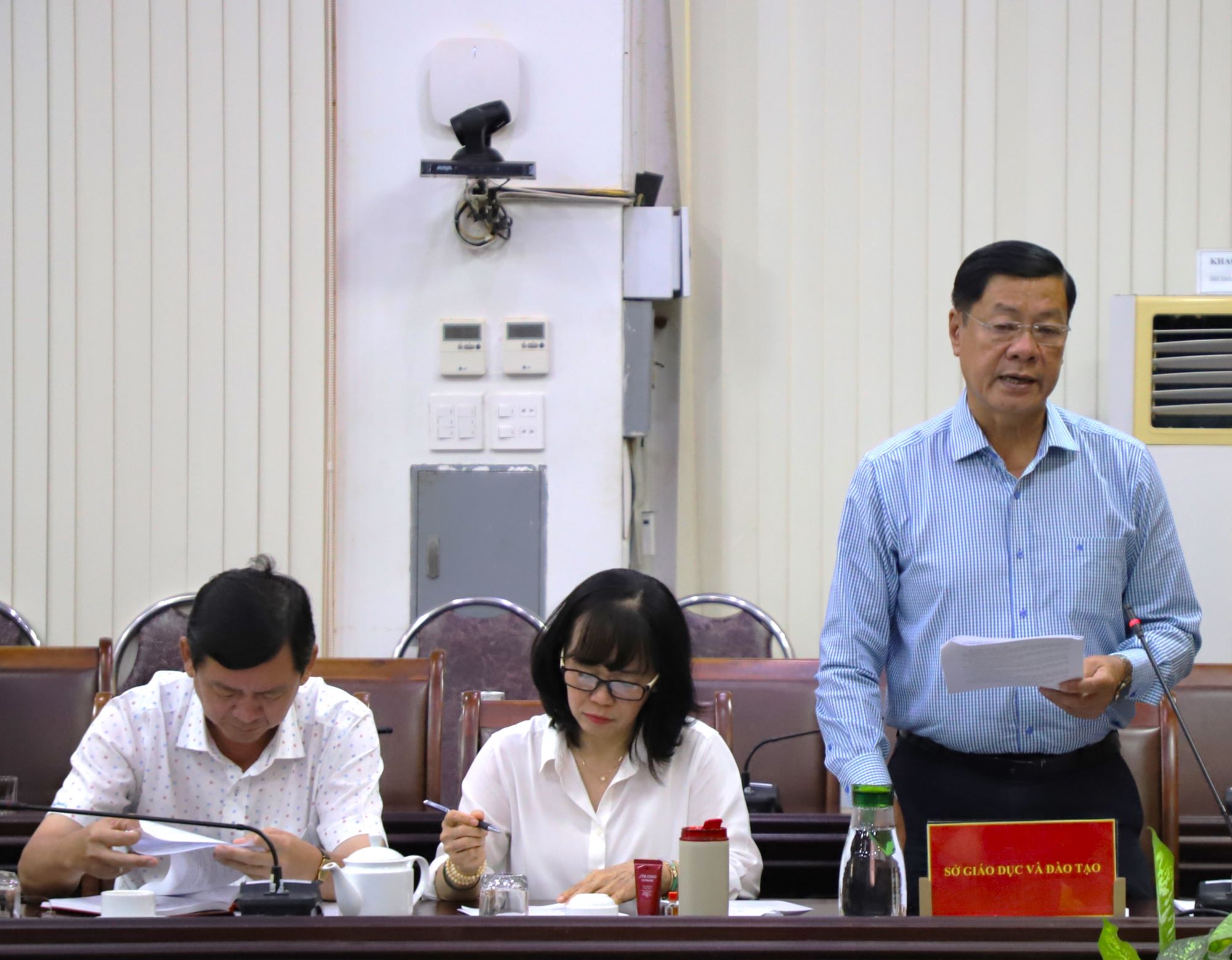Tại cuộc họp, Phó Giám đốc Sở Giáo dục và Đào tạo Huỳnh Văn Hóa thông qua dự thảo Kế hoạch tuyển sinh THCS, THPT năm học 2026 - 2027, theo đó đại biểu tập trung thảo luận về phương thức tuyển sinh như: Tổ chức thi 01 kỳ hoặc 02 kỳ; xét nguyện vọng; thi trắc nghiệm hoặc kết hợp giữa trắc nghiệm và tự luận; thời gian tổ chức thi;…