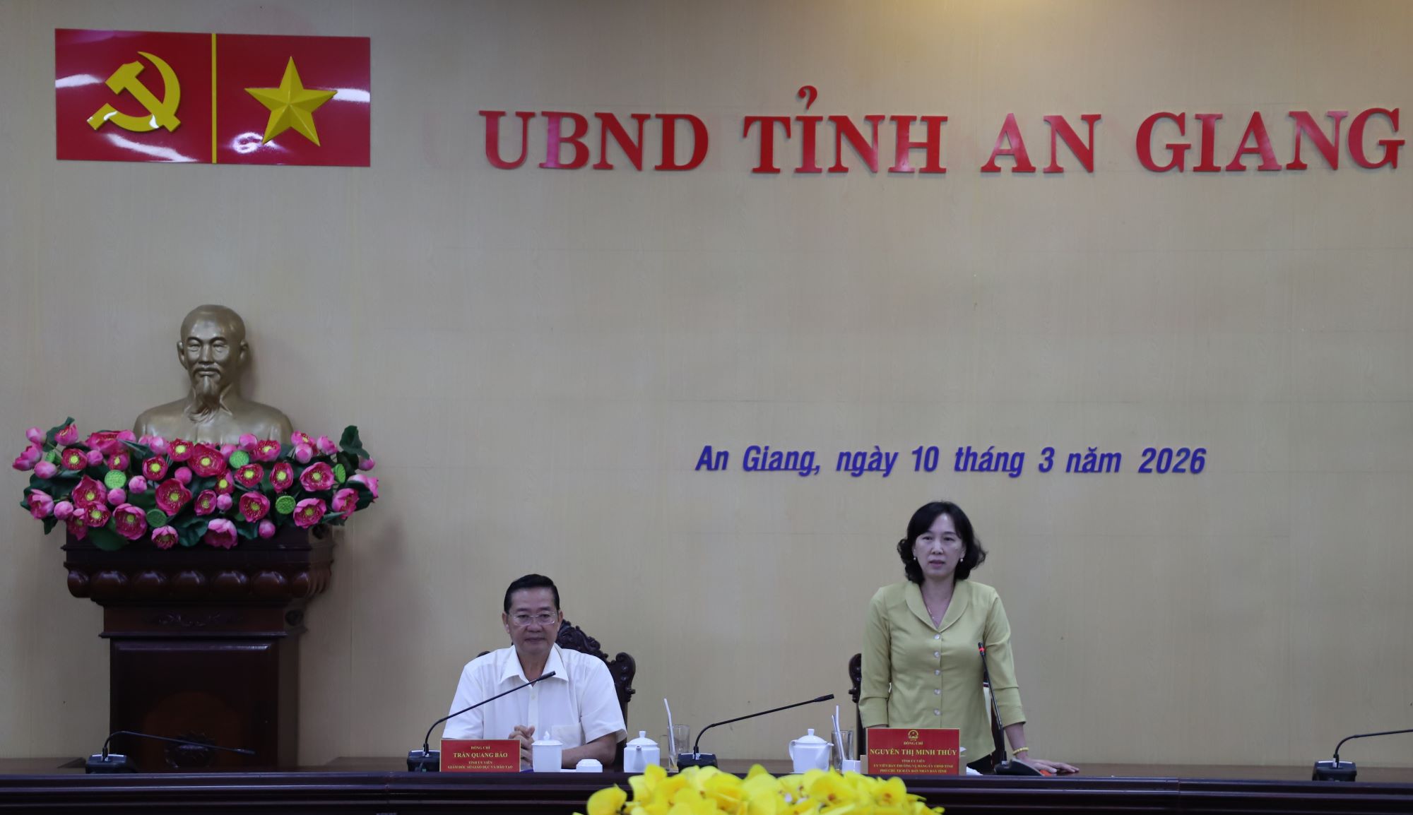 (Cổng TTĐT tỉnh AG) - Sáng ngày 10/3, Phó Chủ tịch UBND tỉnh An Giang Nguyễn Thị Minh Thúy chủ trì cuộc họp với Sở Giáo dục và Đào tạo về tuyển sinh trung học cơ sở (THCS), trung học phổ thông (THPT) năm học 2026 - 2027 (gọi tắt là tuyển sinh lớp 10).