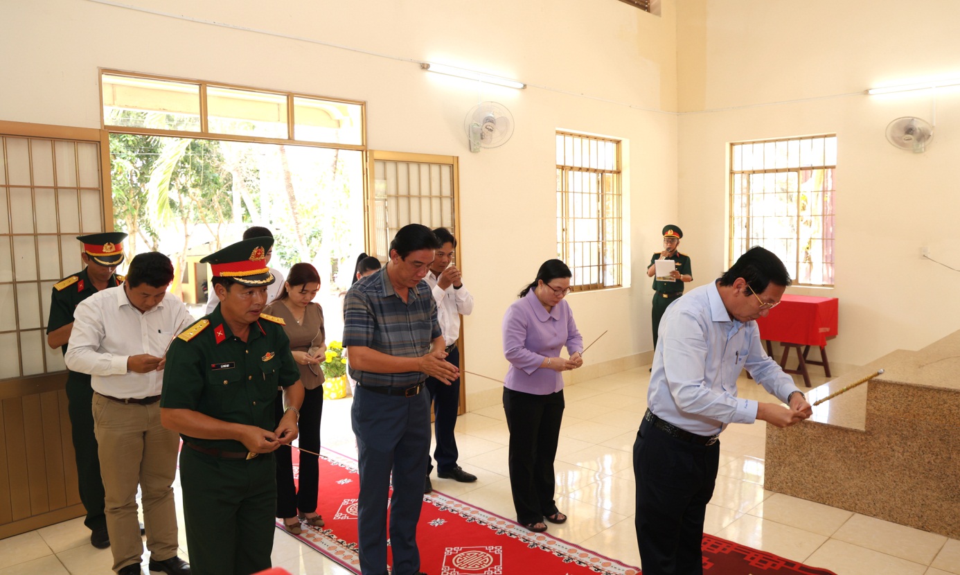 Phó Chủ tịch UBND tỉnh Lê Văn Phước cùng các thành viên trong đoàn đã đến dâng hương, dâng hoa tại Nhà lưu giữ hài cốt liệt sĩ. Trong không khí trang nghiêm, đoàn đã kính cẩn nghiêng mình, dành phút mặc niệm tưởng nhớ công ơn to lớn của những người con ưu tú đã hy sinh xương máu vì nền độc lập của Tổ quốc và nghĩa vụ quốc tế cao cả.