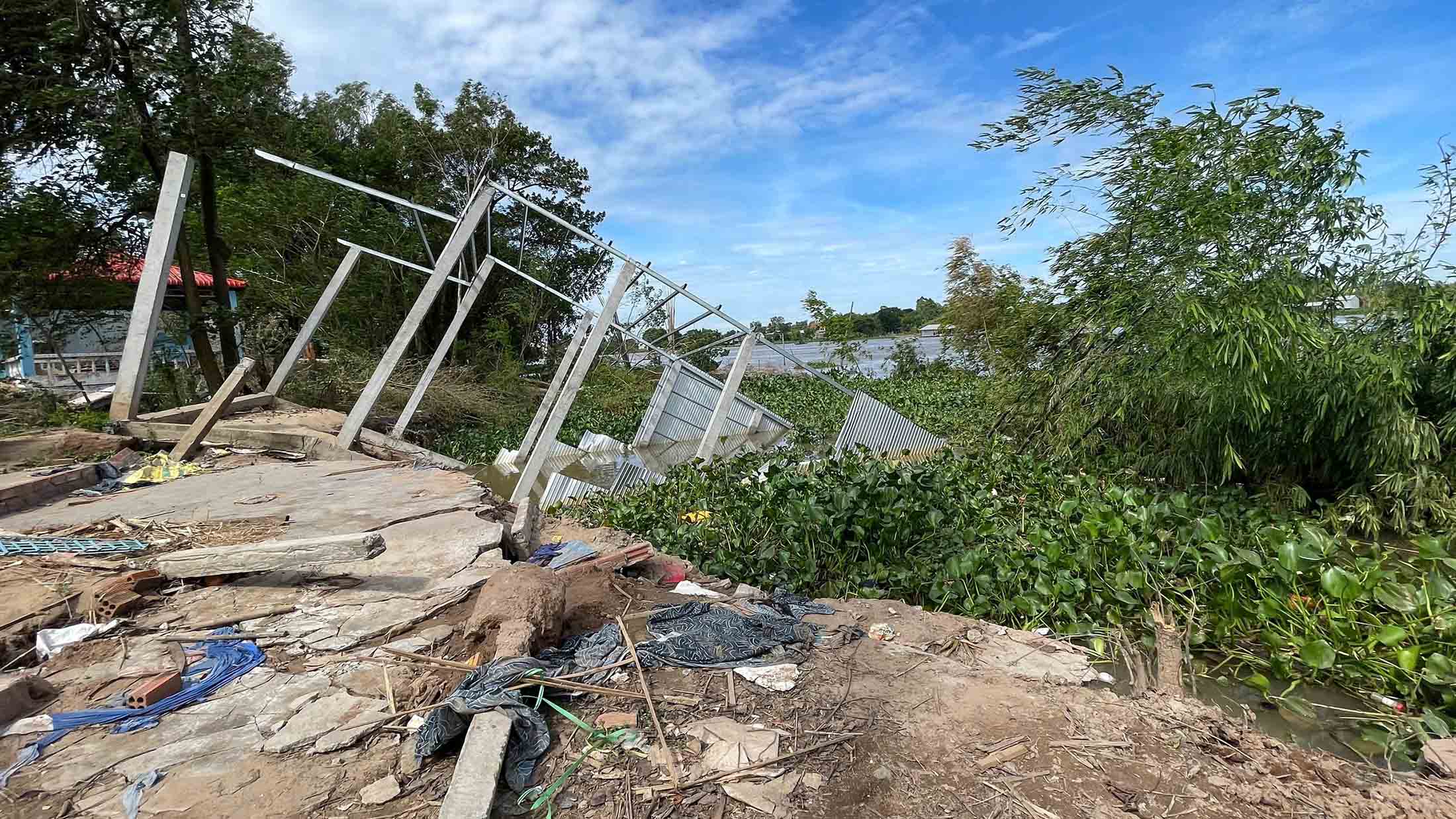 Tại xã Phú Hữu, đoàn công tác đã trực tiếp khảo sát các điểm sạt lở trên địa bàn ấp Vĩnh Phước; nghe địa phương báo cáo nhanh về tình hình sạt lở vào chiều ngày 17/11, tại 3 vị trí sạt lở bờ sông Hậu thuộc ấp Vĩnh Phước. Trong đó, đoạn thuộc bờ Đông Sông Hậu có chiều dài khoảng 150m, rộng khoảng từ 5-10m ăn sâu vào đất liền; đoạn tại Đình thần Vĩnh Lộc có chiều dài khoảng 20m, rộng 4m và đoạn sạt lở phía sau vách lưng Văn phòng Ban nhân ấp Vĩnh Phước chiều dài 25m, rộng gần 5m ăn sâu vào đất liền. Nguyên nhân sạt lở do tác động của dòng chảy trong và sau lũ tạo hố xoáy cục bộ và hàm ếch, kết hợp nền đất yếu sau mưa gây ra sạt lở. Vụ sạt lở không thiệt hại về người, nhưng làm ảnh hưởng trực tiếp đến 13 căn nhà, trong đó 05 căn sụp đổ xuống sông hoàn toàn, 08 căn cần di dời khẩn cấp. Ước thiệt hại ban đầu khoảng 300 triệu đồng.