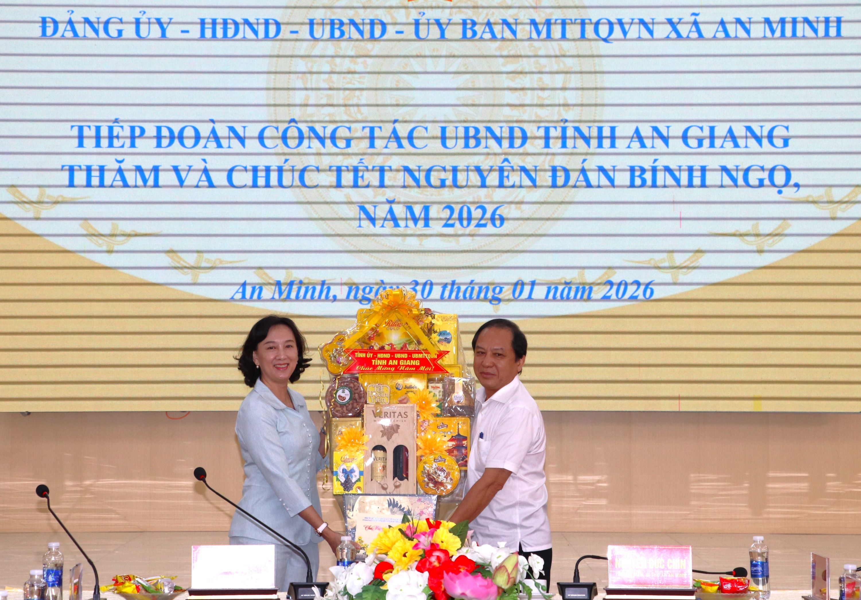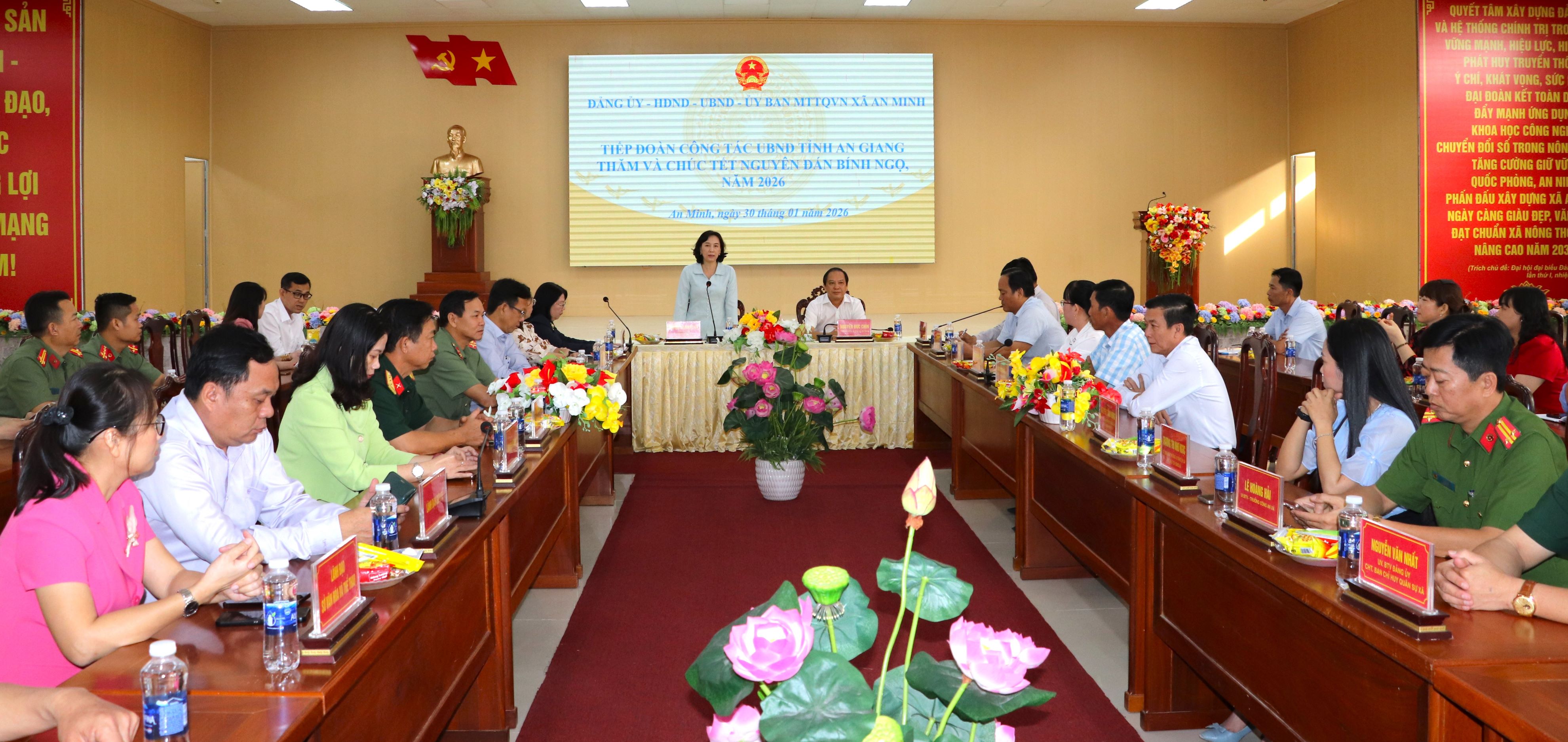 (Cổng TTĐT tỉnh AG) – Ngày 30/01, Đoàn công tác của UBND tỉnh do Phó Chủ tịch UBND tỉnh Nguyễn Thị Minh Thúy làm trưởng đoàn đã đến thăm, chúc Tết Nguyên đán Bính Ngọ 2026 tại xã An Minh và xã Đông Hòa.