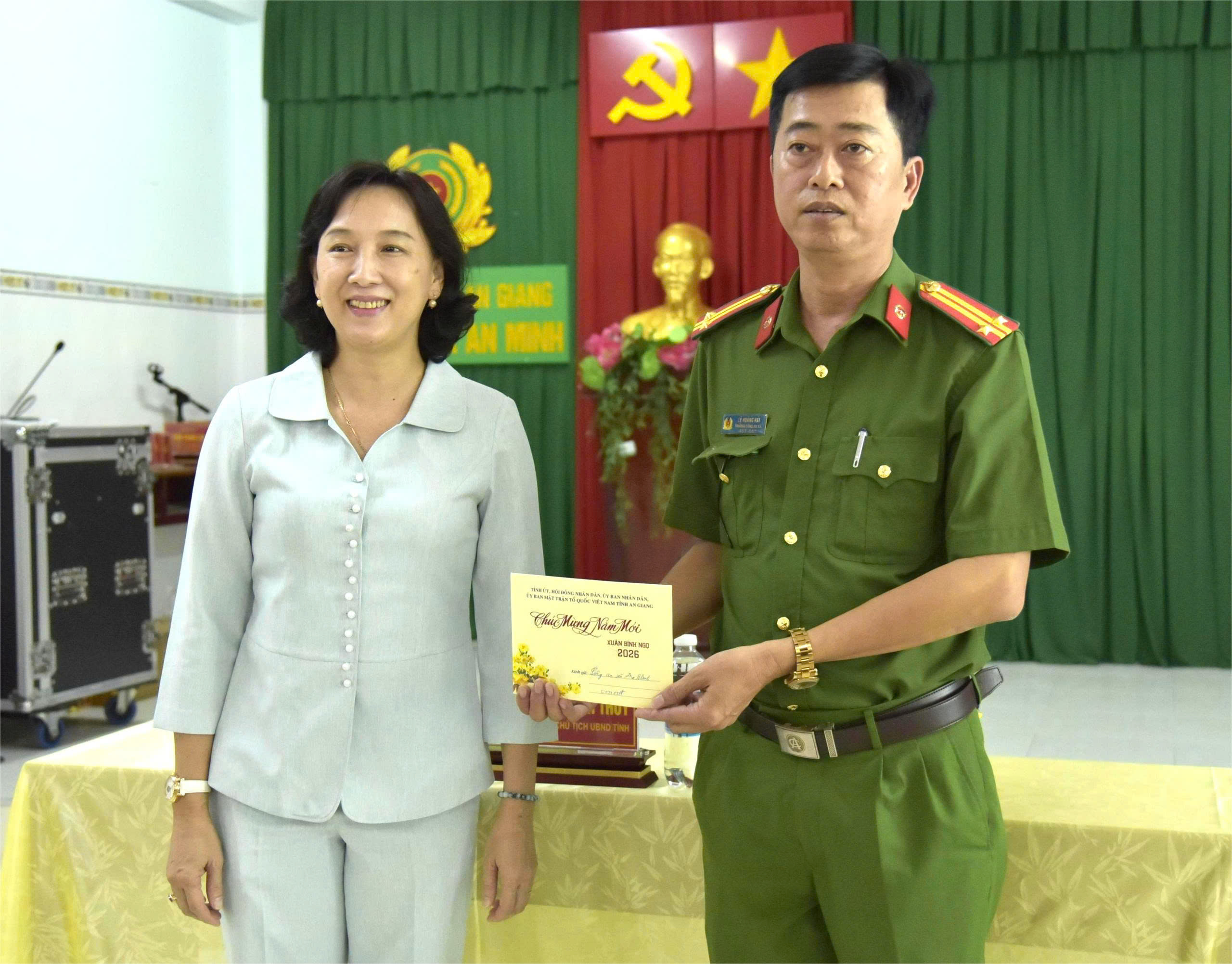 Dịp này, Phó Chủ tịch UBND tỉnh Nguyễn Thị Minh Thúy chúc cán bộ, công chức, chiến sĩ lực lượng vũ trang, các gia đình chính sách, người có công và Nhân dân trên địa bàn hai xã An Minh và Đông Hòa đón Tết Nguyên đán Bính Ngọ 2026 dồi dào sức khỏe, an khang thịnh vượng và thành công./.