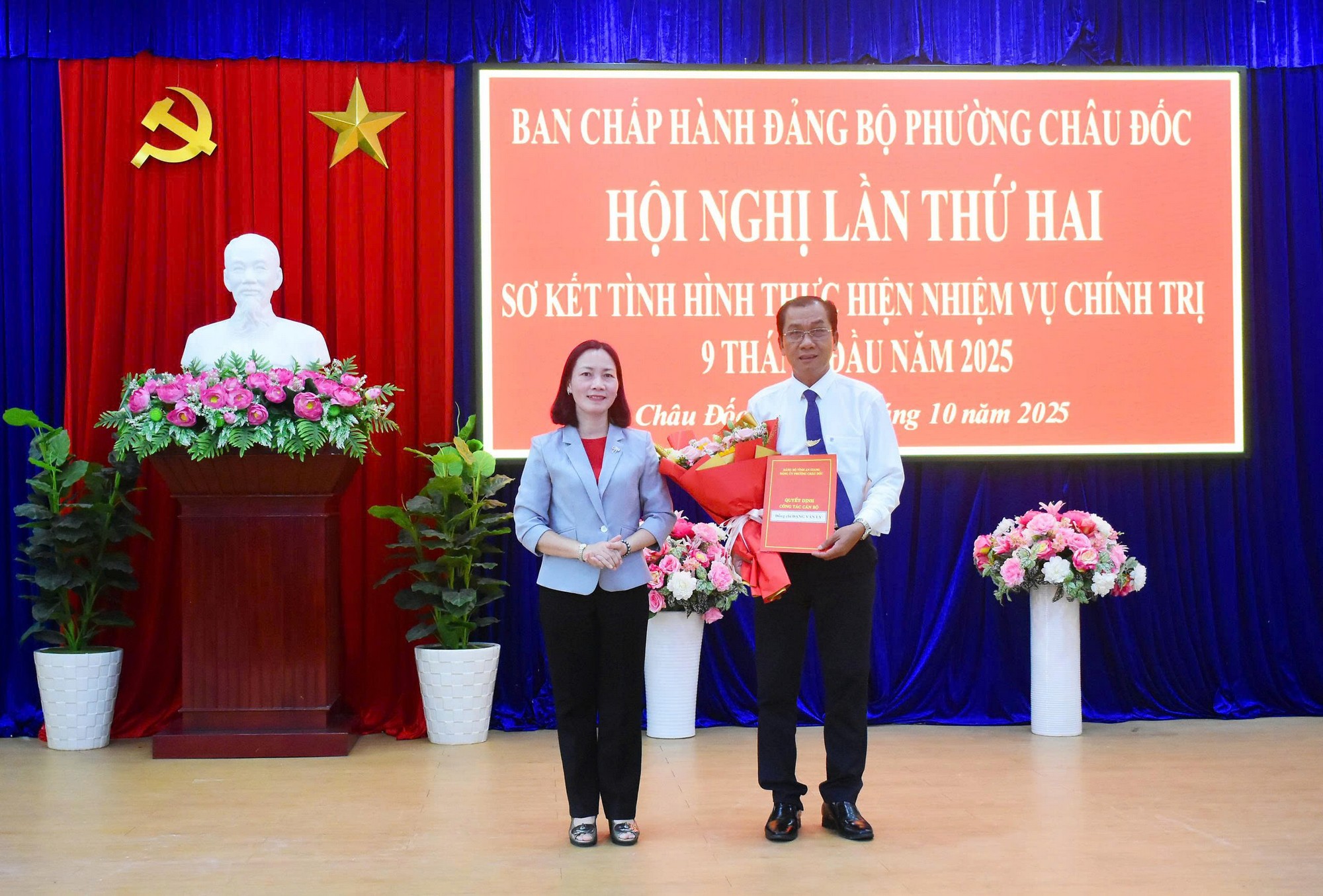 Dịp này, Ban Thường vụ Đảng ủy phường Châu Đốc đã trao quyết định của Ban Thường vụ Tỉnh ủy An Giang chỉ định bổ sung đồng chí Đặng Văn Ly, Hiệu trưởng Trường THCS Nguyễn Trãi, tham gia Ban Chấp hành Đảng bộ phường nhiệm kỳ 2025 – 2030./.