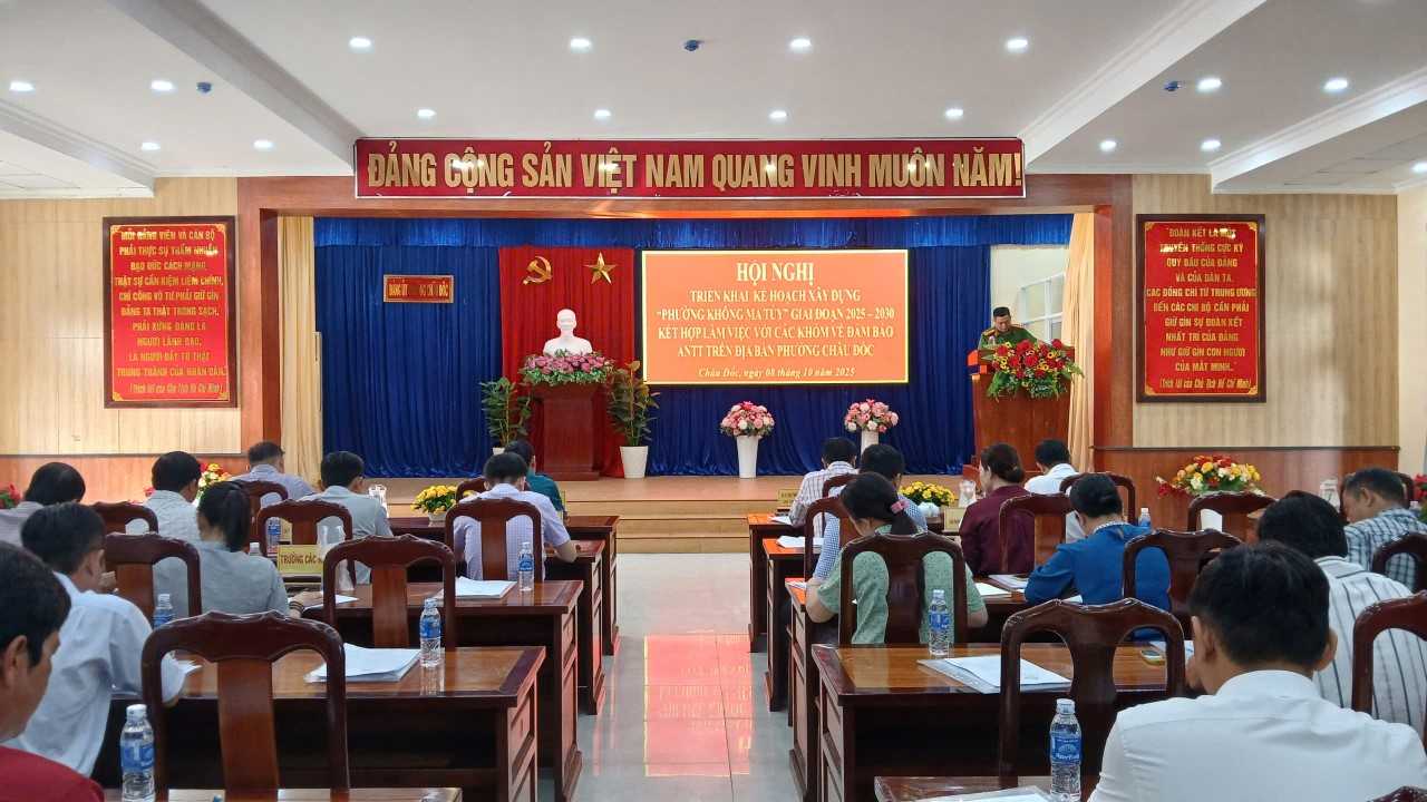 Tại hội nghị đã triển khai Kế hoạch xây dựng “phường không ma túy” giai đoạn 2025 – 2030, với mục tiêu đưa phường Châu Đốc trở thành địa bàn an toàn, không có người nghiện, không phát sinh tội phạm và tệ nạn ma túy, góp phần giữ vững ổn định an ninh trật tự, xây dựng đời sống văn minh, lành mạnh trong Nhân dân. Kế hoạch xác định rõ nhiệm vụ trọng tâm là đẩy mạnh tuyên truyền, giáo dục phòng, chống ma túy; quản lý chặt chẽ người nghiện và người sử dụng trái phép chất ma túy; thực hiện hiệu quả công tác cai nghiện và hỗ trợ người sau cai tái hòa nhập cộng đồng; tăng cường đấu tranh, triệt xóa các tụ điểm phức tạp về ma túy; xây dựng mô hình “khóm không ma túy”, tiến tới “phường không ma túy”; đồng thời huy động sức mạnh tổng hợp của cả hệ thống chính trị và toàn dân cùng tham gia...