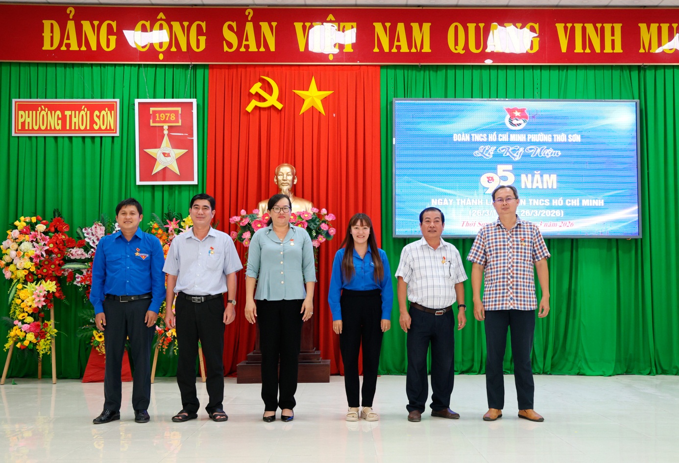 (Cổng TTĐT tỉnh AG)- Chiều 26/3, Ban Thường vụ Đoàn phường Thới Sơn tổ chức buổi họp mặt kỷ niệm 95 năm Ngày thành lập Đoàn TNCS Hồ Chí Minh (26/03/1931 – 26/03/2026), vinh danh 09 cá nhân tiêu biểu vì sự nghiệp giáo dục thế hệ trẻ. Đến dự có Phó Bí thư Thường trực Đảng ủy phường Thới Sơn Phạm Văn Ngon.