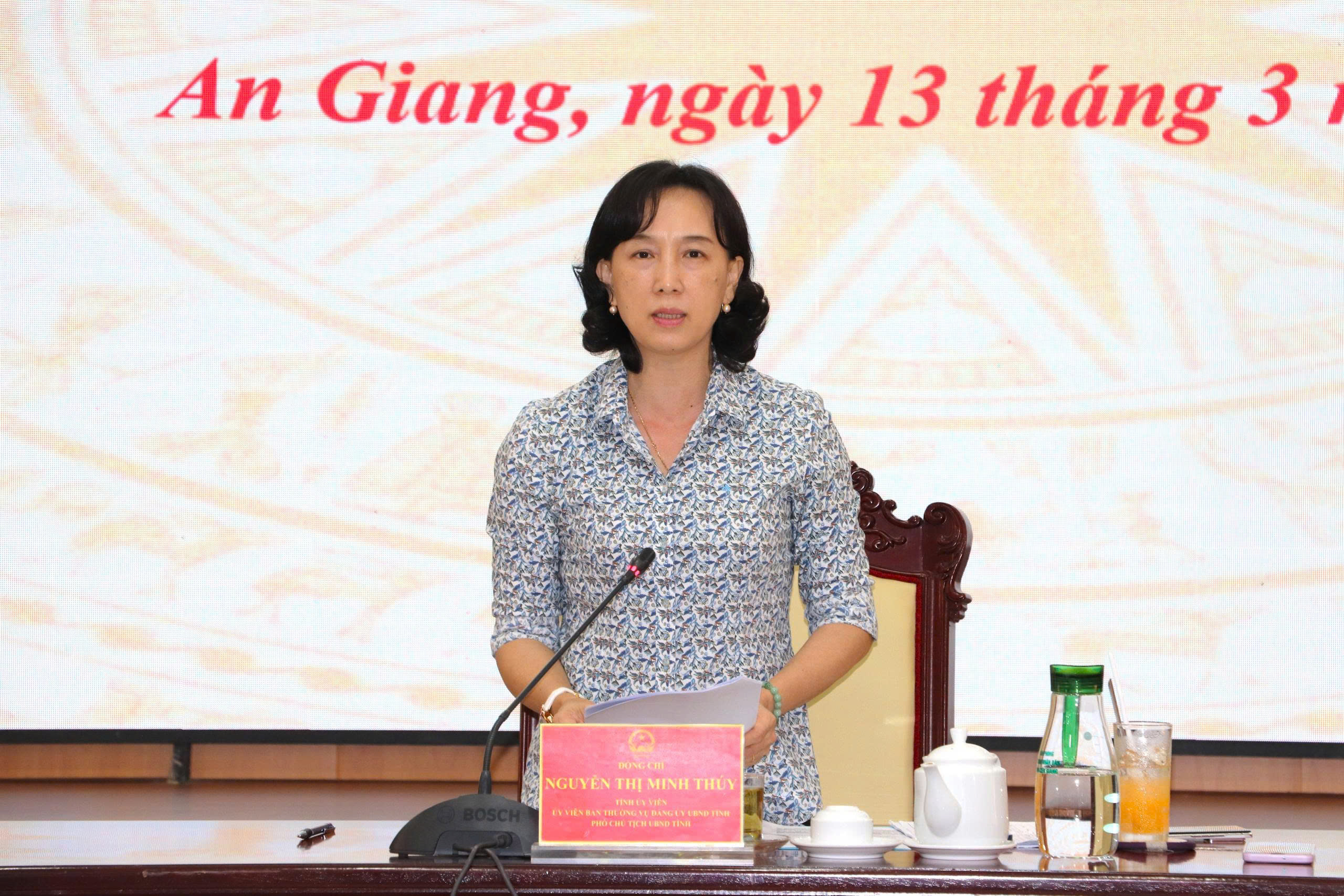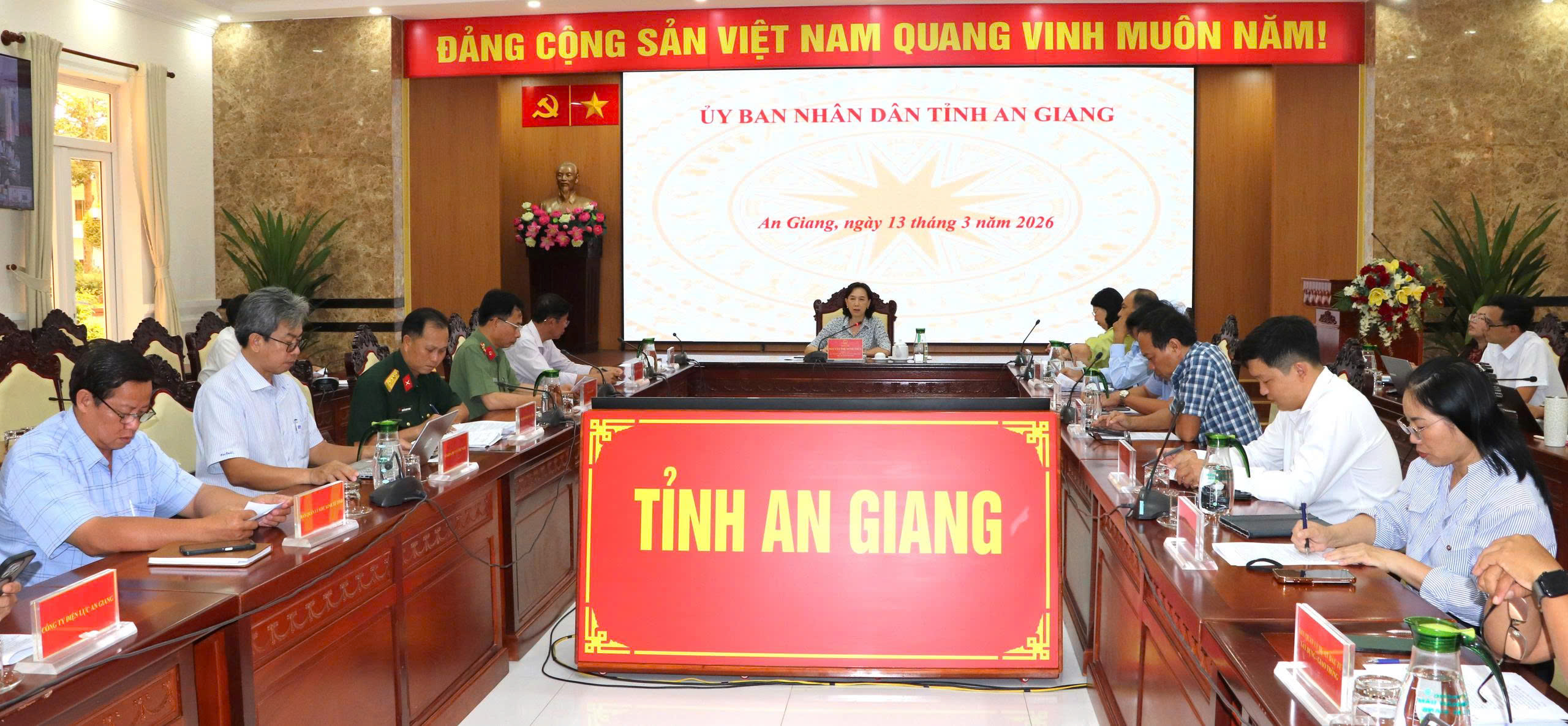 (Cổng TTĐT tỉnh AG) – Chiều 13/3, Phó Chủ tịch UBND tỉnh Nguyễn Thị Minh Thúy chủ trì buổi làm việc để rà soát công tác chuẩn bị đầu tư và tổ chức Lễ khởi công các dự án Trường phổ thông nội trú liên cấp tiểu học và trung học cơ sở tại các xã biên giới đất liền trên địa bàn tỉnh.
