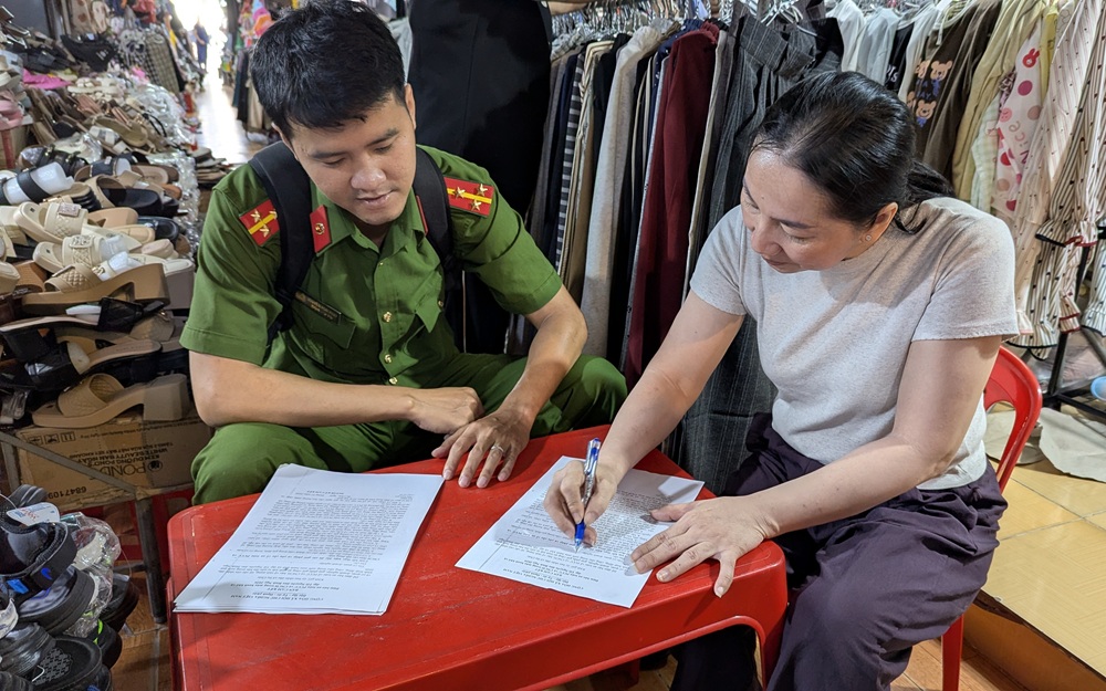 Bên cạnh công tác kiểm tra, đoàn kiểm tra còn tuyên truyền, hướng dẫn các tiểu thương cách sử dụng bình chữa cháy, nêu cao tinh thần, trách nhiệm trong công tác phòng cháy chữa cháy và cho các tiểu thương ký cam kết về việc đảm bảo các điều kiện về an toàn PCCC.