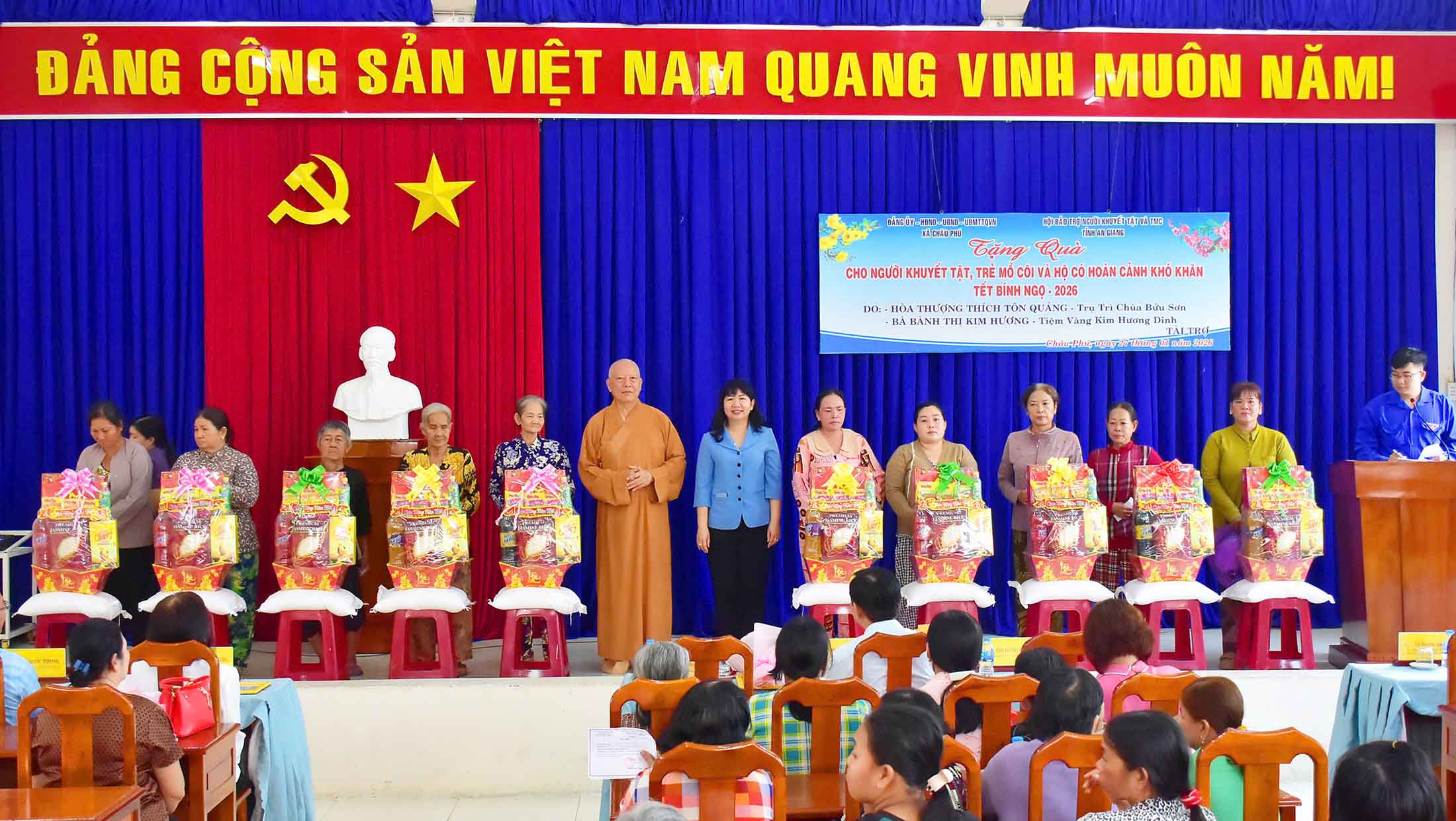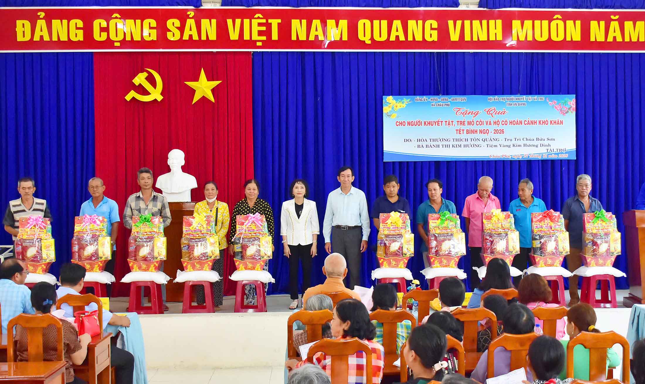 Mỗi phần quà trị giá 500.000 đồng, với tổng giá trị đợt trao quà là 50 triệu đồng, do Hòa Thượng Thích Tôn Quảng (trụ trì chùa Bửu Sơn, xã Núi Cấm) và bà Bành Thị Kim Hương (phường Long Xuyên) tài trợ. Các phần quà góp phần mang mùa xuân ấm áp đến hộ nghèo, hộ cận nghèo địa phương.
