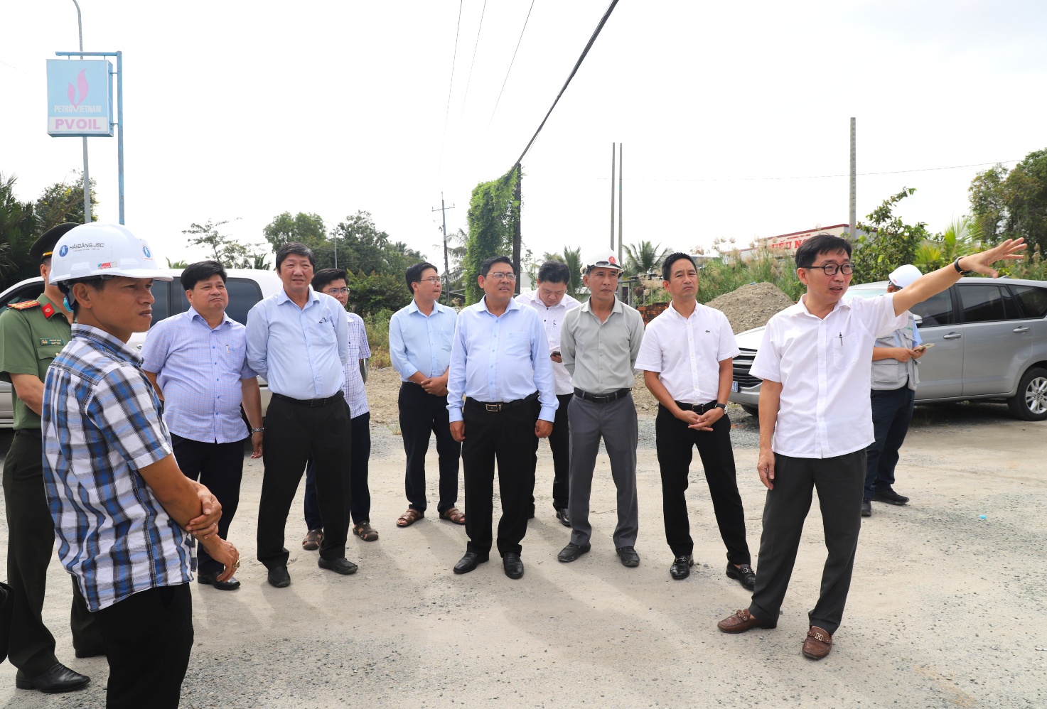 (Cổng TTĐT tỉnh AG)-Sáng ngày 25/11, Đoàn công tác của UBND tỉnh An Giang, do Tỉnh ủy viên, Phó Chủ tịch UBND tỉnh An Giang Ngô Công Thức làm Trưởng đoàn đến kiểm tra tuyến đường Quốc lộ 61 và công tác giải phóng mặt bằng phục vụ thi công các Dự án đầu tư xây dựng đường Hồ Chí Minh đoạn Rạch Sỏi - Bến Nhất, Gò Quao - Vĩnh Thuận và Dự án cầu Vàm Xáng - Thị Đội, Giồng Riềng thuộc Dự án Nâng cao tĩnh không các cầu đường bộ cắt qua tuyến đường thủy nội địa quốc gia - giai đoạn 1 (khu vực phía Nam).