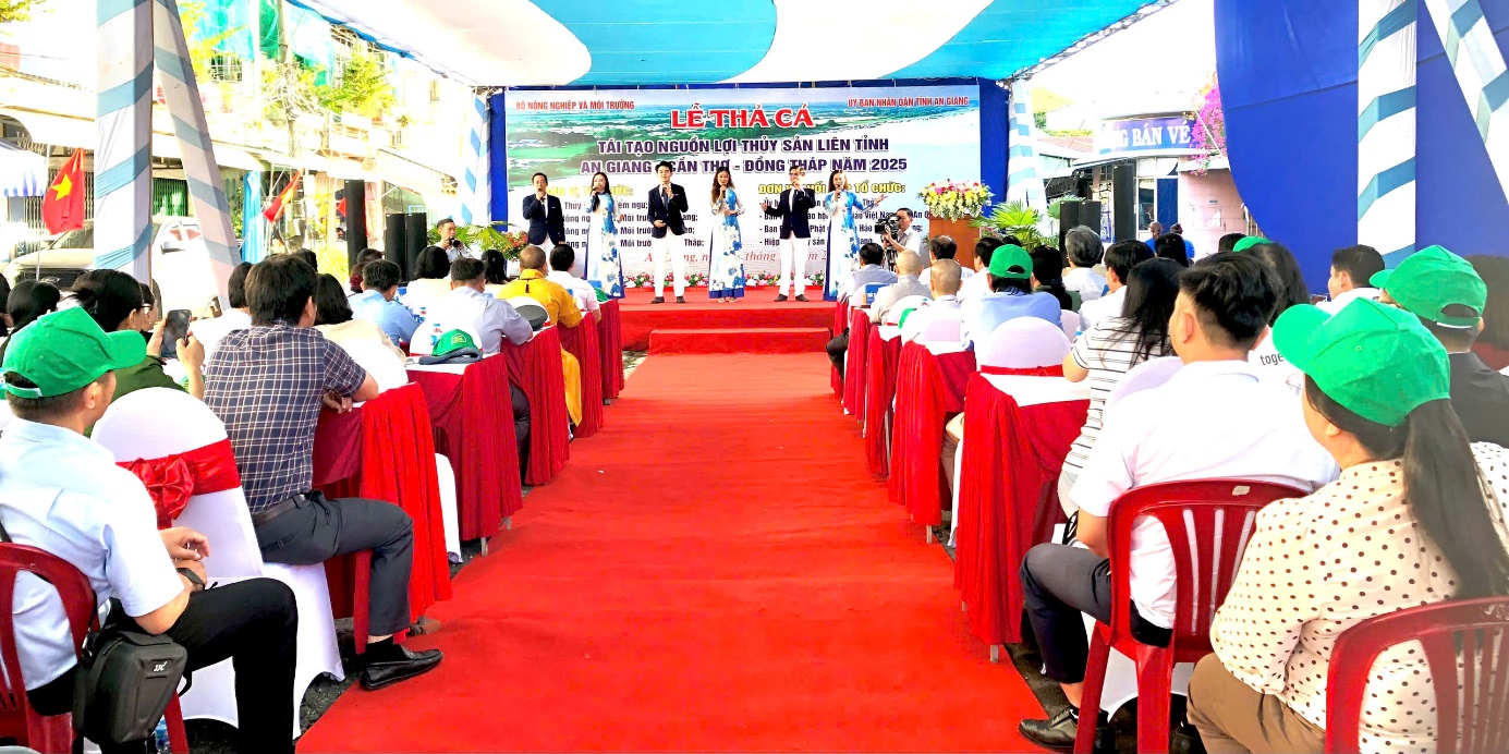 Tại lễ thả cá giống tái tạo nguồn lợi thủy sản liên tỉnh An Giang - Cần Thơ - Đồng Tháp năm 2025, có 215.500 con cá giống, gồm các loại cá ét, cá he, cá hô, cá mè hôi, các cóc, cá trèn bầu, cá chạch lấu, cá tra dầu, cá chép, cá chài, cá vồ cờ… được thả xuống sông Hậu.