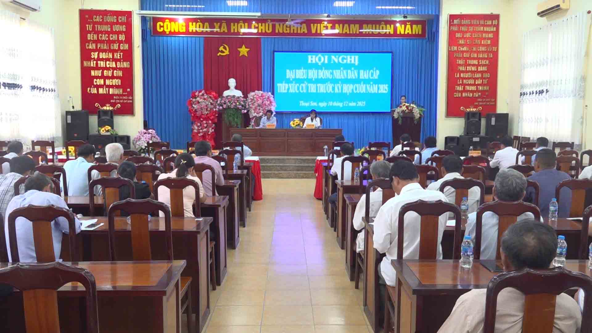 (Cổng TTĐT tỉnh AG)- Sáng ngày 10/12, tại Hội trường UBND xã Thoại Sơn, Đoàn đại biểu HĐND tỉnh An Giang và HĐND xã Thoại Sơn đã tổ chức Hội nghị tiếp xúc cử tri trước kỳ họp cuối năm 2025.