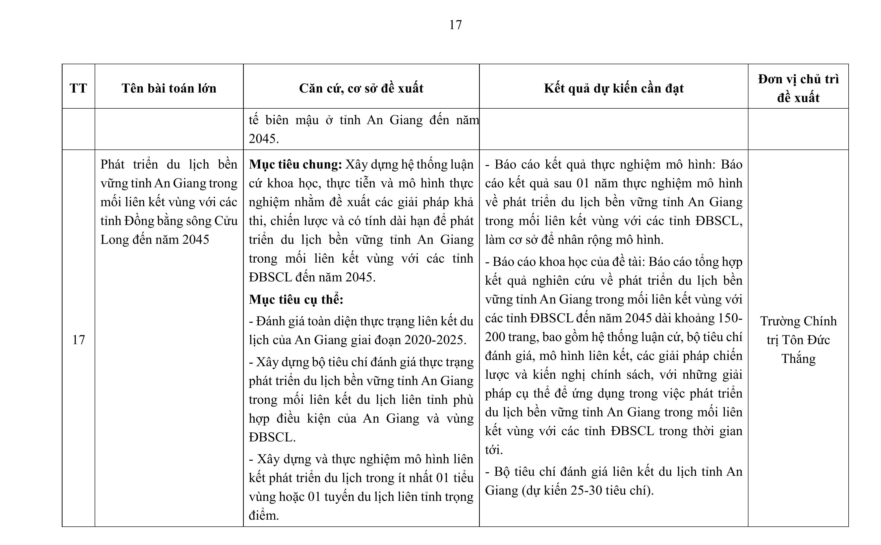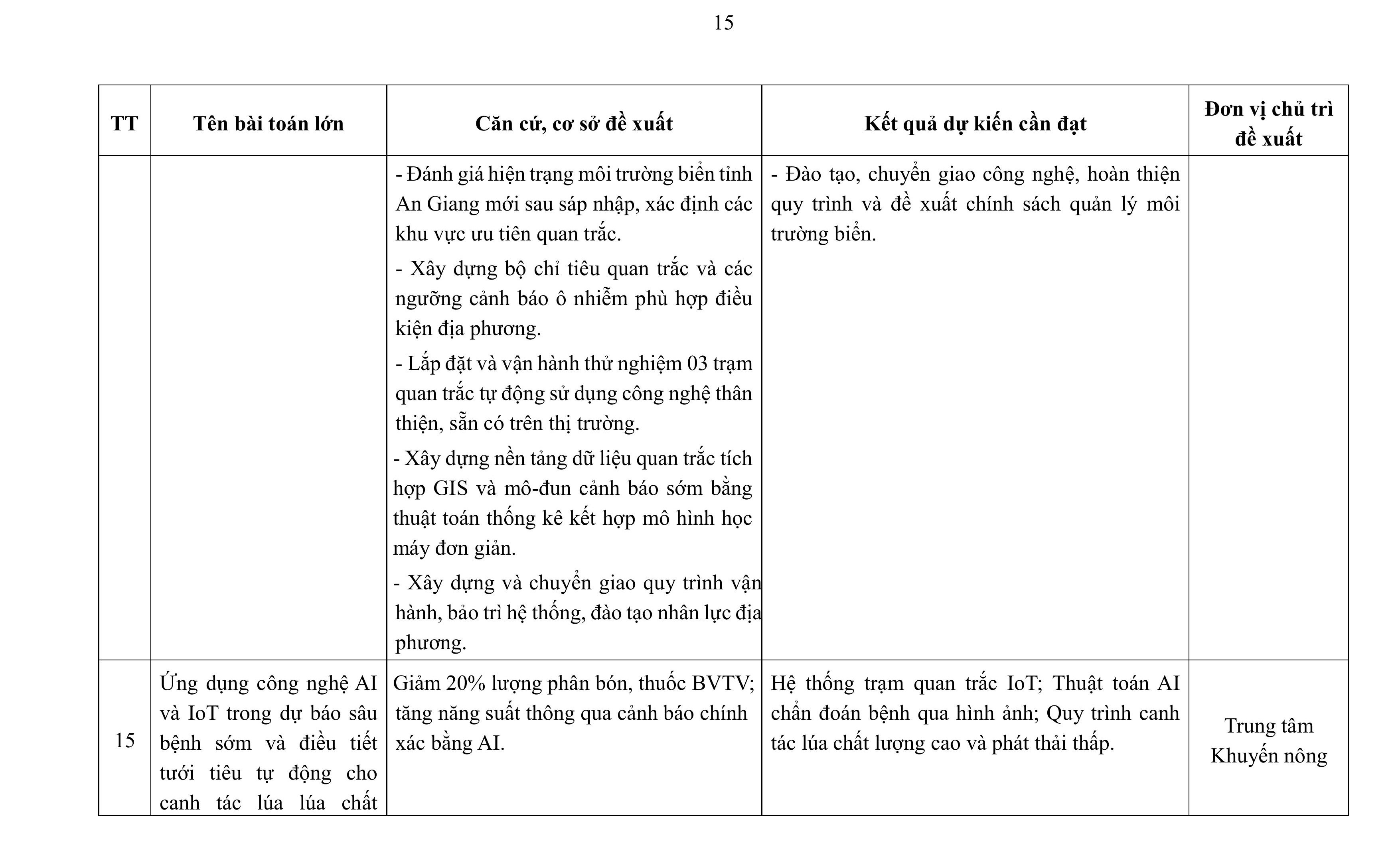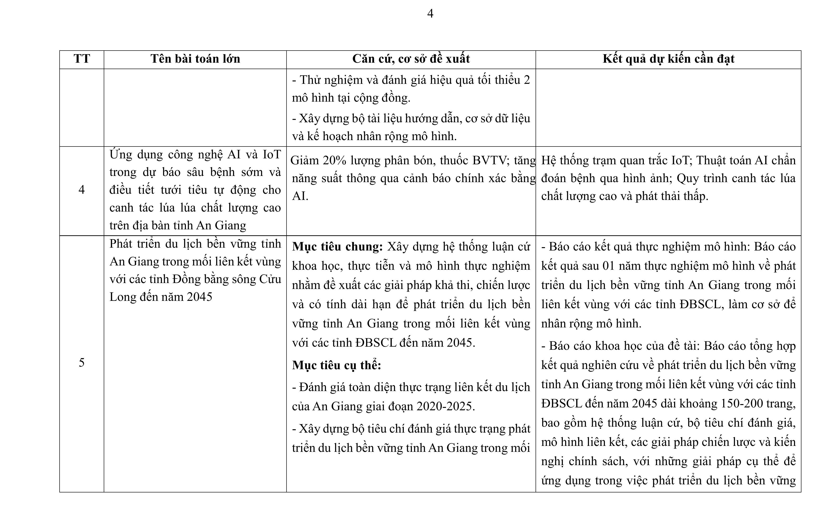 aA Thông Báo Nghị quyết 57 Khoa học - Công nghệ Thông báo Về việc công bố các bài toán lớn về khoa học, công nghệ, đổi mới sáng tạo và chuyển đổi số trong năm 2026 tỉnh An Giang 03/04/2026, 15:53 Quay về Chia sẻ Copy link thành công Bài viết cùng chuyên mục Công bố kết quả xếp loại các cơ quan, đơn vị theo Bộ chỉ số phục vụ người dân, doanh nghiệp tháng 03 năm 2026 Thông Báo Công Dân Thông Báo Kết quả TTHC Doanh Nghiệp 03/04/2026 Dự báo thời tiết điểm 10 ngày tới tại An Giang Thời tiết - Thủy văn mực nước Thông Báo 03/04/2026 Thông báo về Phương thức nhận Thông báo nghĩa vụ tài chính về đất đai của người nộp thuế Quy ĐỊnh - Hướng Dẫn - Chính Sách Thông Báo Công Dân Thông Báo 02/04/2026 Quyết định điều chỉnh, bổ sung Bảng giá tính lệ phí trước bạ đối với ô tô, xe máy trên địa bàn tỉnh An Giang Thông tin thuế, phí, lệ phí của tỉnh/ngành/địa phương Thông Báo Tài chính - Ngân sách 01/04/2026 Tin dự báo nắng nóng tỉnh An Giang Thời tiết - Thủy văn mực nước Thông Báo 01/04/2026 Quyết định đặt tên, số hiệu các tuyến đường tỉnh trên địa bàn tỉnh An Giang Thông tin chỉ đạo điều hành Thông Báo Công Dân Thông Báo 27/03/2026 Chỉ thị tăng cường công tác bảo vệ môi trường trên địa bàn tỉnh An Giang Thông tin chỉ đạo điều hành Thông Báo 24/03/2026 Quyết định phân cấp thẩm quyền quyết định cho phép miễn, giảm tiền sử dụng đất đối với người có công với cách mạng và thân nhân liệt sĩ trên địa bàn tỉnh An Giang Thông tin thuế, phí, lệ phí của tỉnh/ngành/địa phương Thông Báo Công Dân Thông Báo 22/03/2026 Nghị quyết công bố kết quả bầu cử và danh sách những người trúng cử đại biểu Hội đồng nhân dân tỉnh An Giang khóa XI, nhiệm kỳ 2026 - 2031 Thông Báo Nghị quyết HĐND Bầu cử Đại biểu HĐND các cấp, nhiệm kỳ 2026-2031 19/03/2026 Quyết định ban hành đơn giá trồng rừng thay thế trên địa bàn tỉnh An Giang Thông tin thuế, phí, lệ phí của tỉnh/ngành/địa phương Thông Báo Công Dân Thông Báo 17/03/2026 /vi/thong-bao-ve-viec-cong-bo-cac-bai-toan-lon-ve-khoa-hoc-cong-nghe-doi-moi-sang-tao-va-chuyen-doi-so-trong-nam-2026-tinh-an-giang