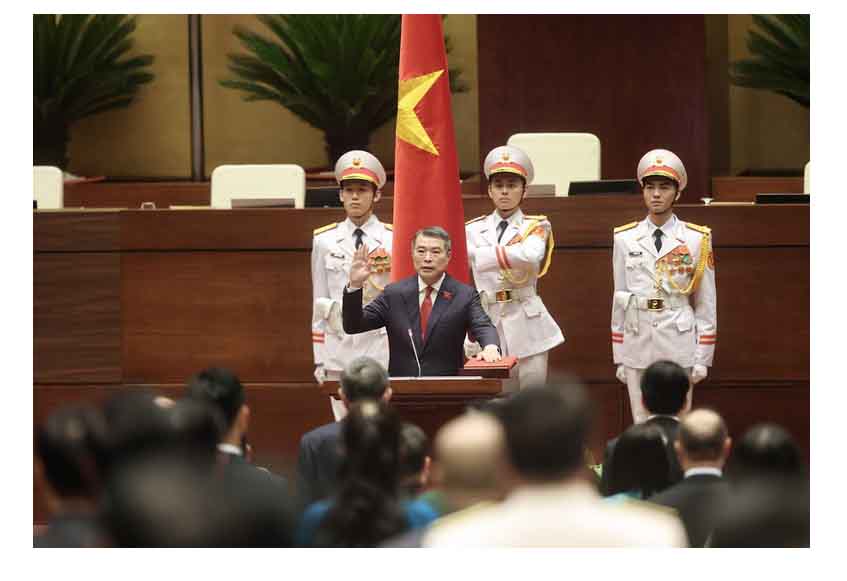 "Dưới cờ đỏ sao vàng thiêng liêng của Tổ quốc, trước Quốc hội và đồng bào cử tri cả nước, tôi - Thủ tướng Chính phủ nước Cộng hòa xã hội chủ nghĩa Việt Nam, xin tuyên thệ: Tuyệt đối trung thành với Tổ quốc, với nhân dân, với Hiến pháp nước Cộng hòa xã hội chủ nghĩa Việt Nam, nỗ lực phấn đấu hoàn thành tốt nhiệm vụ được Đảng, Nhà nước và nhân dân giao phó", Thủ tướng Chính phủ Lê Minh Hưng tuyên thệ.