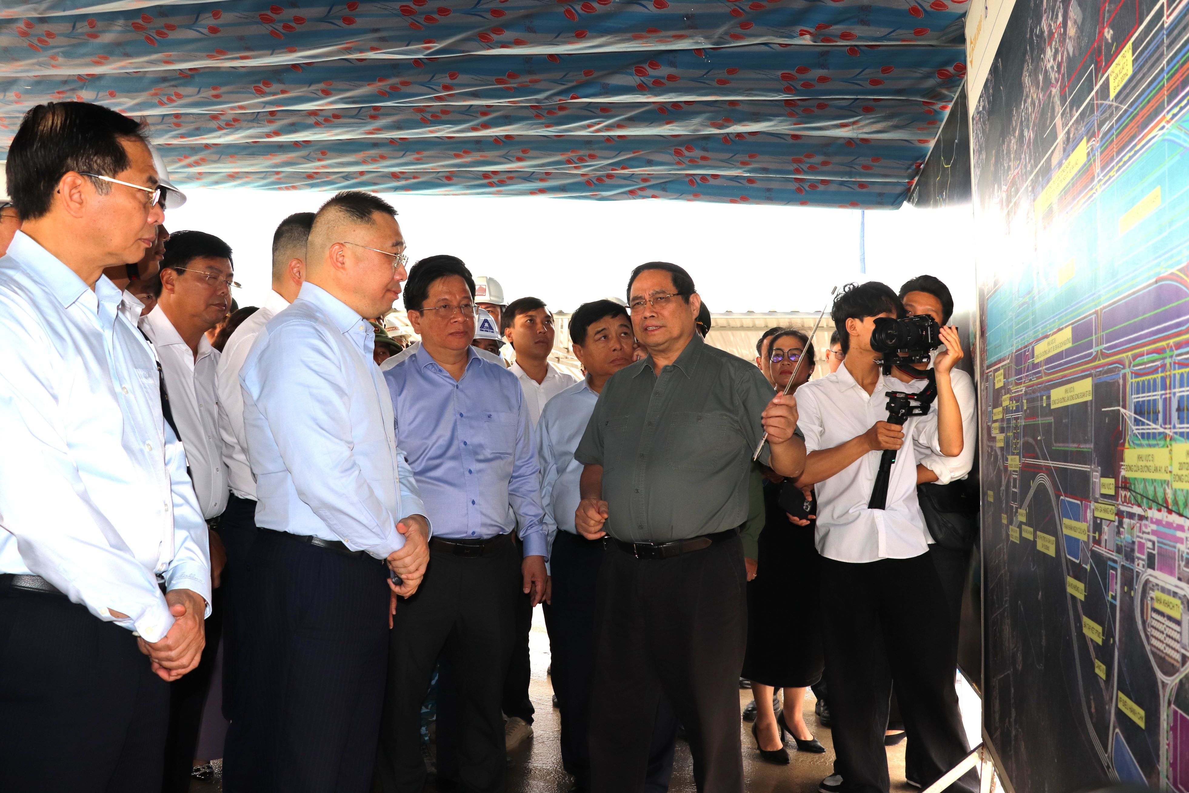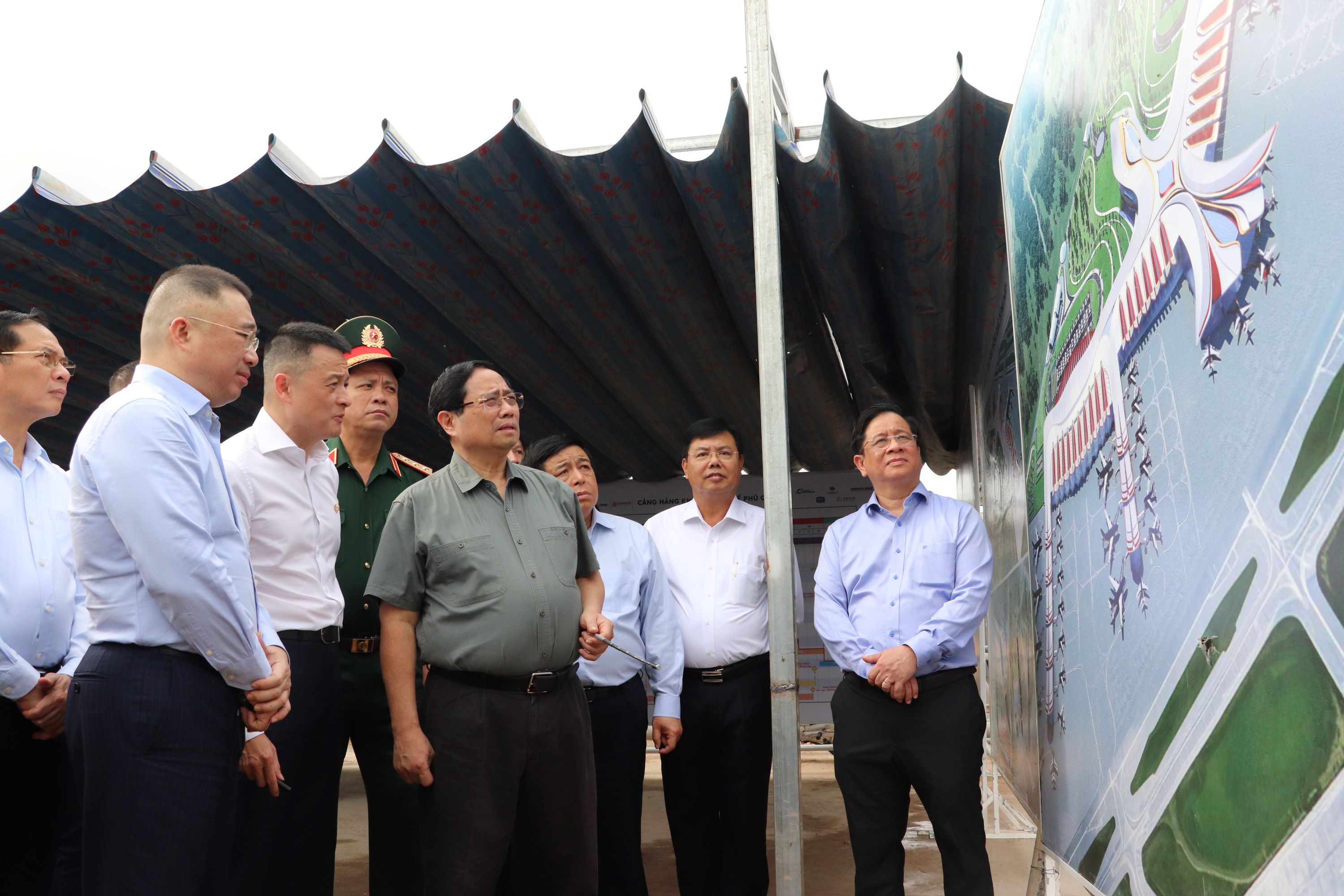 Thủ tướng đề nghị tiếp tục phát huy tinh thần "chỉ bàn làm, không bàn lùi"; "vừa chạy vừa xếp hàng", "vượt nắng, thắng mưa, không thua bão gió", "làm ngày, làm đêm, làm thêm ngày nghỉ", "làm xuyên lễ tết", "ăn tranh thủ, ngủ khẩn trương", để đẩy nhanh tiến độ thi công, đưa sân bay vào khai thác sớm càng tốt; trong quá trình làm nếu có khó khăn, vướng mắc thì báo cáo ngay.