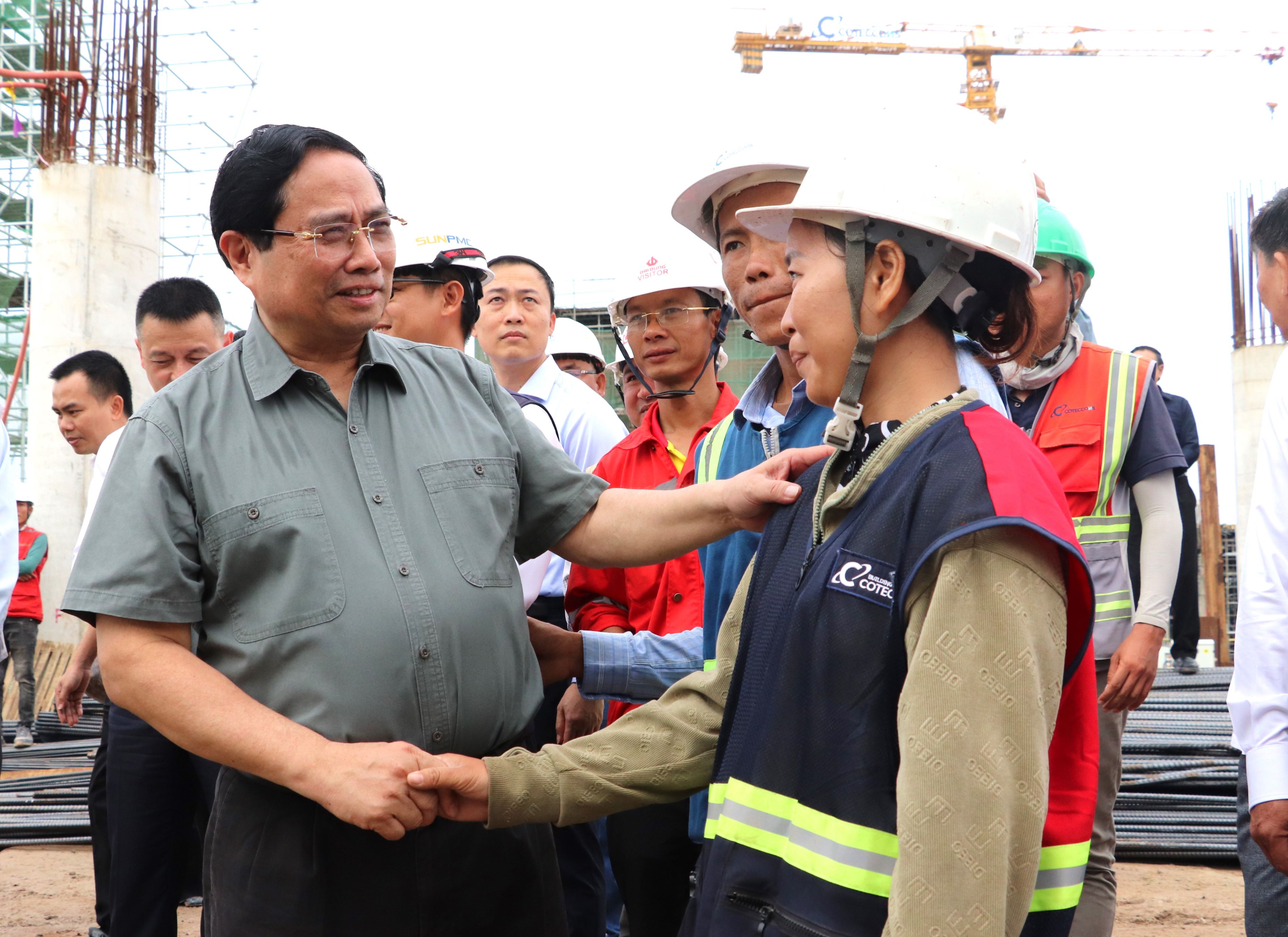 Thủ tướng Phạm Minh Chính động viên công nhân nỗ lực, cống hiến hết mình, tuân thủ các quy định trên công trường, bám sát đường găng tiến độ để hoàn thành dự án đúng tiến độ, đảm bảo chất lượng./.