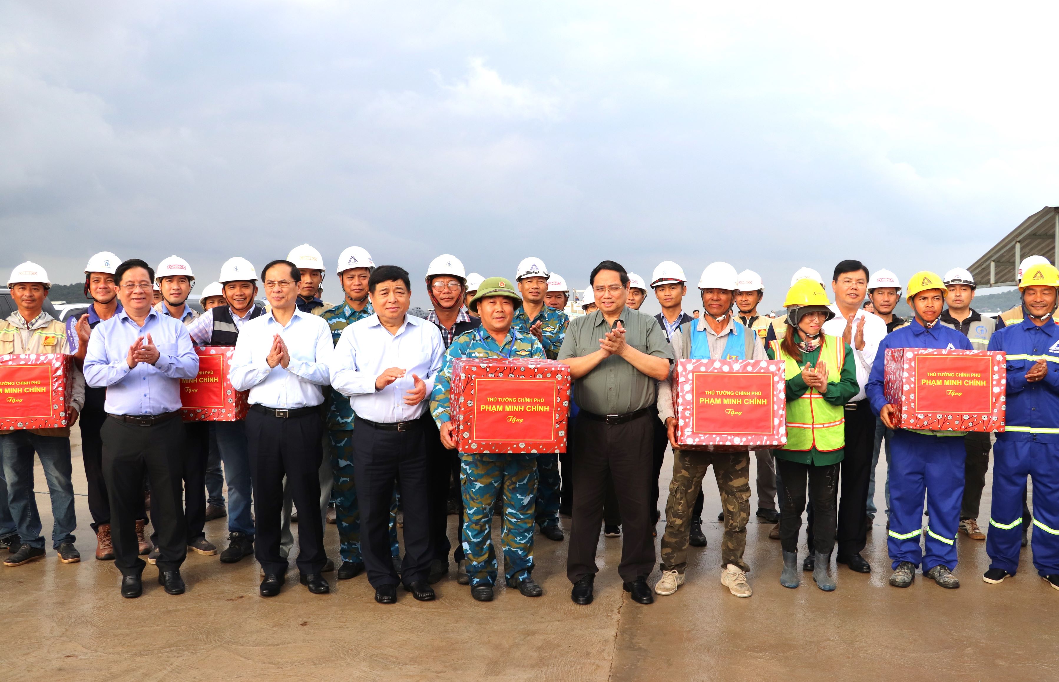 Kiểm tra, tặng quà lực lượng đang thi công Đường tỉnh ĐT.975 – đường kết nối trục động lực và cảng hàng không quốc tế Phú Quốc, Thủ tướng Phạm Minh Chính biểu dương chủ đầu tư, các nhà thầu đã tập trung giải phóng mặt bằng, thi công nền đường theo tiến độ; cần khẩn trương hoàn thành công tác giải phóng mặt bằng, đẩy nhanh tiến độ thi công theo điều kiện mặt bằng thực tế, đảm bảo tiến độ tổng thể của dự án.