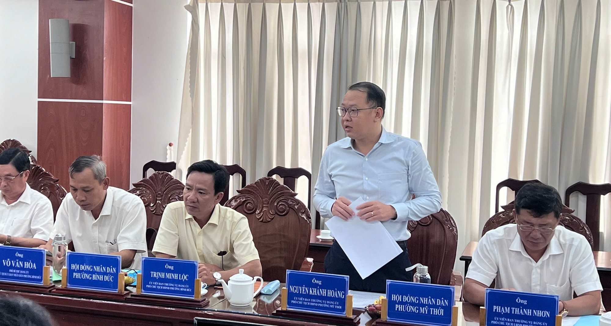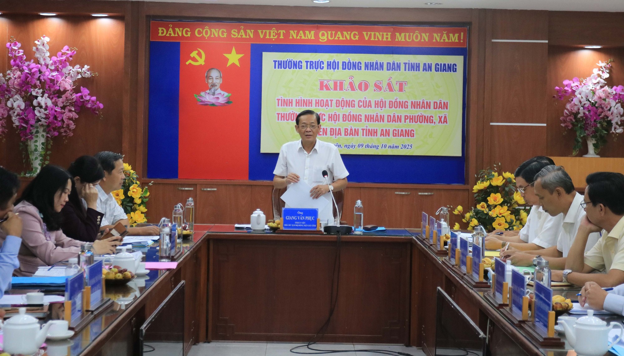 (Cổng TTĐT tỉnh AG)- Chiều 09/10, tại phường Long Xuyên, Tổ công tác số 2 Thường trực HĐND tỉnh An Giang do Phó Chủ tịch HĐND tỉnh Giang Văn Phục làm Tổ trưởng đã có buổi khảo sát và làm việc với HĐND các phường Long Xuyên, Bình Đức, Mỹ Thới và xã Mỹ Hòa Hưng về tình hình hoạt động của HĐND, Thường trực HĐND từ ngày 1/7/2025 đến nay.