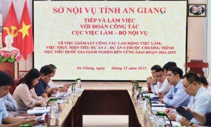 (Chinhphu.vn) - Ngày 5/11, Đoàn công tác Cục Việc làm (Bộ Nội vụ) do Cục trưởng Vũ Trọng Bình dẫn đầu đã có buổi làm việc với Sở Nội vụ tỉnh An Giang về công tác quản lý lao động, việc làm và hỗ trợ việc làm bền vững.