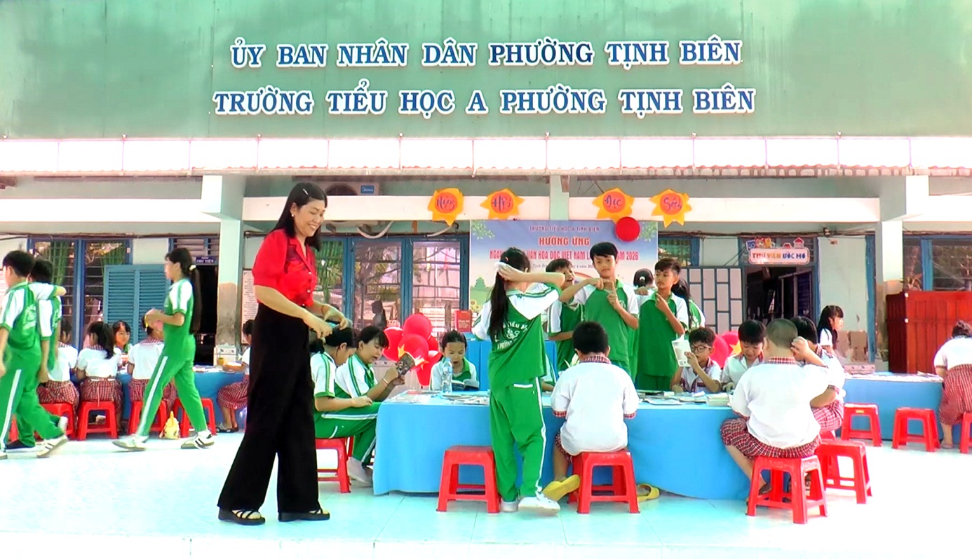 (Cổng TTĐT tỉnh AG)-Sáng 21/4, Trường Tiểu học A Tịnh Biên, phường Tịnh Biên, tỉnh An Giang tổ chức chuỗi hoạt động hưởng ứng Ngày Sách và Văn hóa đọc Việt Nam lần thứ V năm 2026. Sự kiện thu hút sự tham gia của hơn 300 học sinh cùng cán bộ, giáo viên nhà trường.