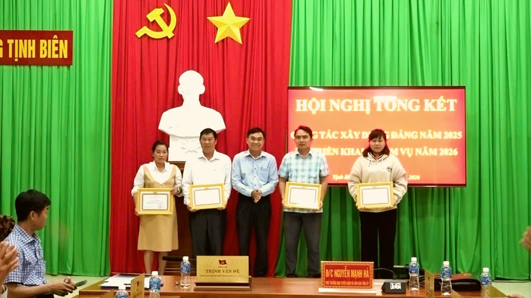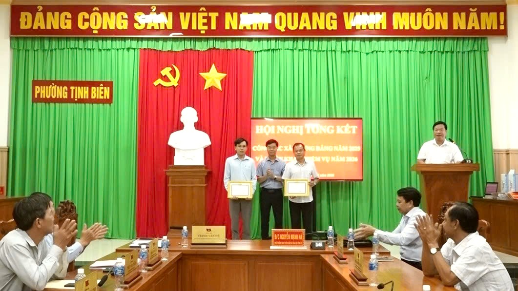 Dịp này, Đảng uỷ phường Tịnh Biên tặng giấy khen cho 6 chi, đảng bộ cơ sở, chi bộ trực thuộc và 79 đảng viên đạt tiêu chuẩn “Hoàn thành xuất sắc nhiệm vụ” tiêu biểu năm 2025. Đồng thời, 3 đảng viên đạt tiêu chuẩn “Hoàn thành xuất sắc nhiệm vụ” tiêu biểu 5 năm liền 2021 – 2025 được biểu dương và khen thưởng./.