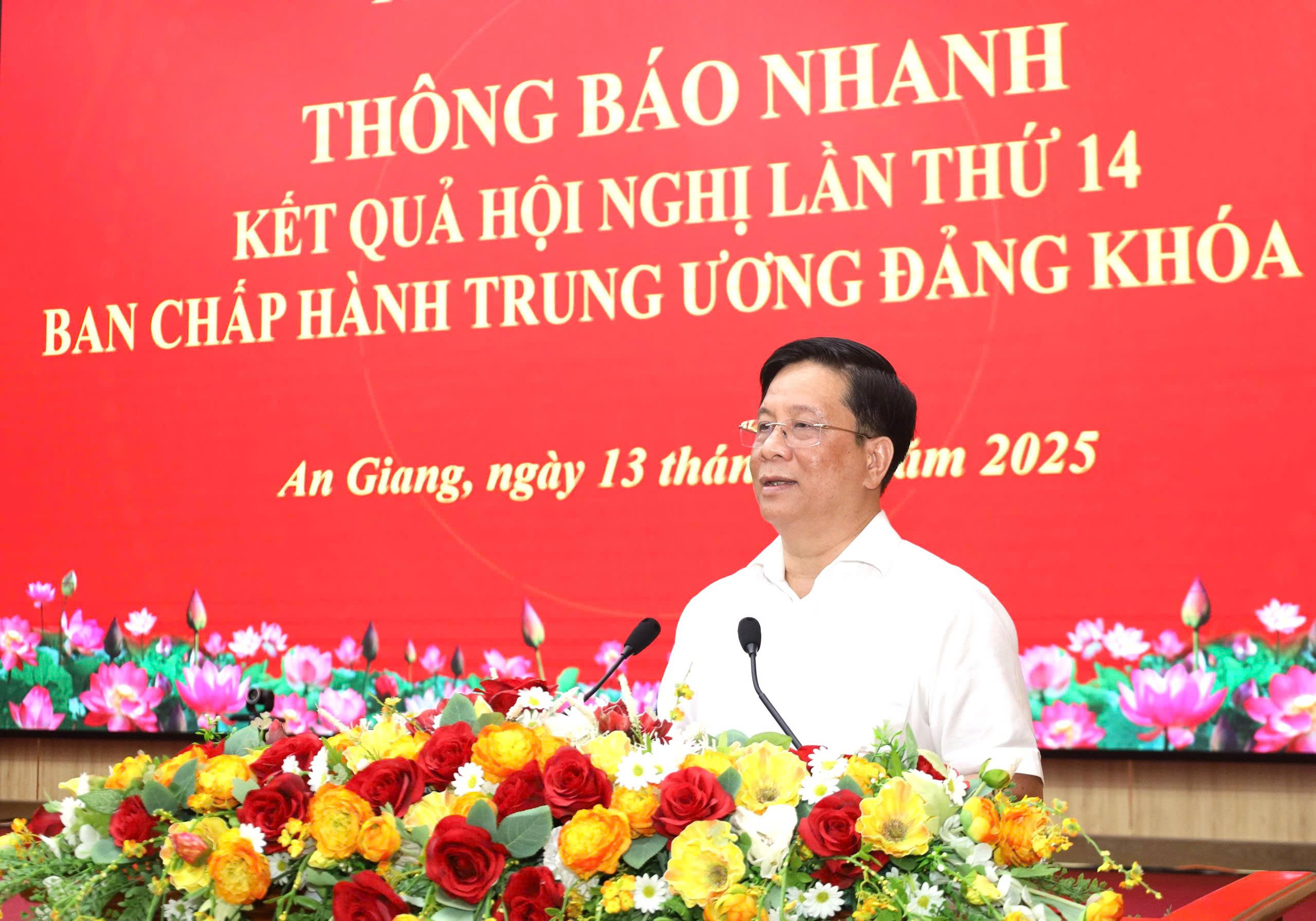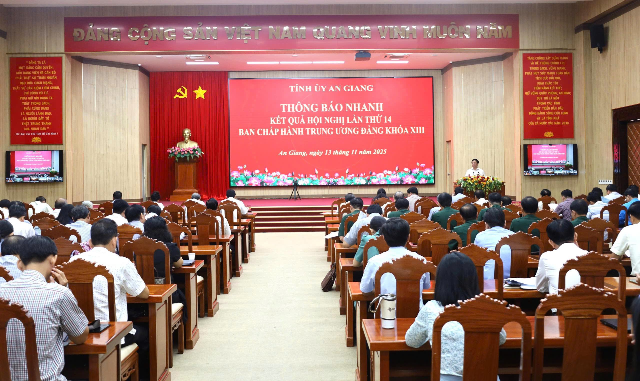 Sáng 13/11, Ban Thường vụ Tỉnh ủy An Giang tổ chức Hội nghị thông báo nhanh kết quả Hội nghị lần thứ 14 Ban Chấp hành Trung ương Đảng khóa XIII.