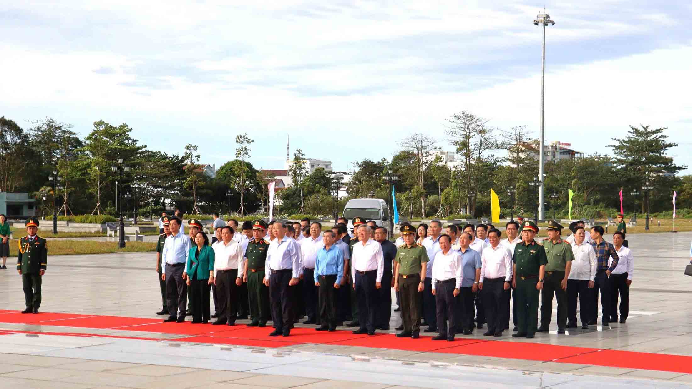 Cùng đi có các đồng chí Ủy viên Bộ Chính trị, Bí thư Trung ương Đảng: Lê Minh Hưng, Trưởng ban Tổ chức Trung ương; Bùi Thị Minh Hoài, Chủ tịch Ủy ban Trung ương Mặt trận Tổ quốc Việt Nam; các đồng chí Ủy viên Bộ Chính trị: Nguyễn Xuân Thắng, Giám đốc Học viện Chính trị Quốc gia Hồ Chí Minh, Chủ tịch Hội đồng Lý luận Trung ương; Nguyễn Hòa Bình, Phó Thủ tướng Thường trực Chính phủ; Đại tướng Phan Văn Giang, Bộ trưởng Bộ Quốc phòng; Đại tướng Lương Tam Quang, Bộ trưởng Bộ Công an; Nguyễn Duy Ngọc, Bí thư Thành ủy Hà Nội; các đồng chí Ủy viên Ban Bí thư, Ủy viên Trung ương Đảng, lãnh đạo Đảng, Nhà nước, các ban, bộ, ngành Trung ương, lãnh đạo tỉnh An Giang, đại diện các đơn vị lực lượng vũ trang đóng trên địa bàn tỉnh An Giang.