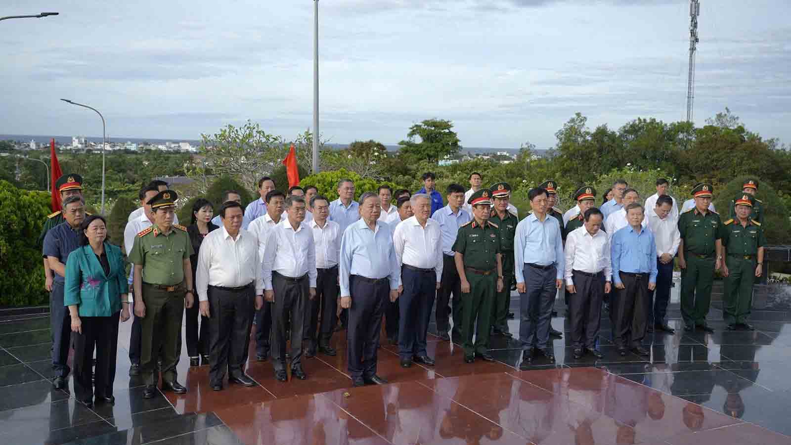 (Cổng TTĐT tỉnh AG) - Trong chương trình công tác tại tỉnh An Giang, sáng 20/11, Tổng Bí thư Tô Lâm và đoàn công tác Trung ương đã đến dâng hoa, dâng hương tại Tượng đài Chủ tịch Hồ Chí Minh, Đền thờ Liệt sĩ Phú Quốc, Nghĩa trang Liệt sĩ Phú Quốc.
