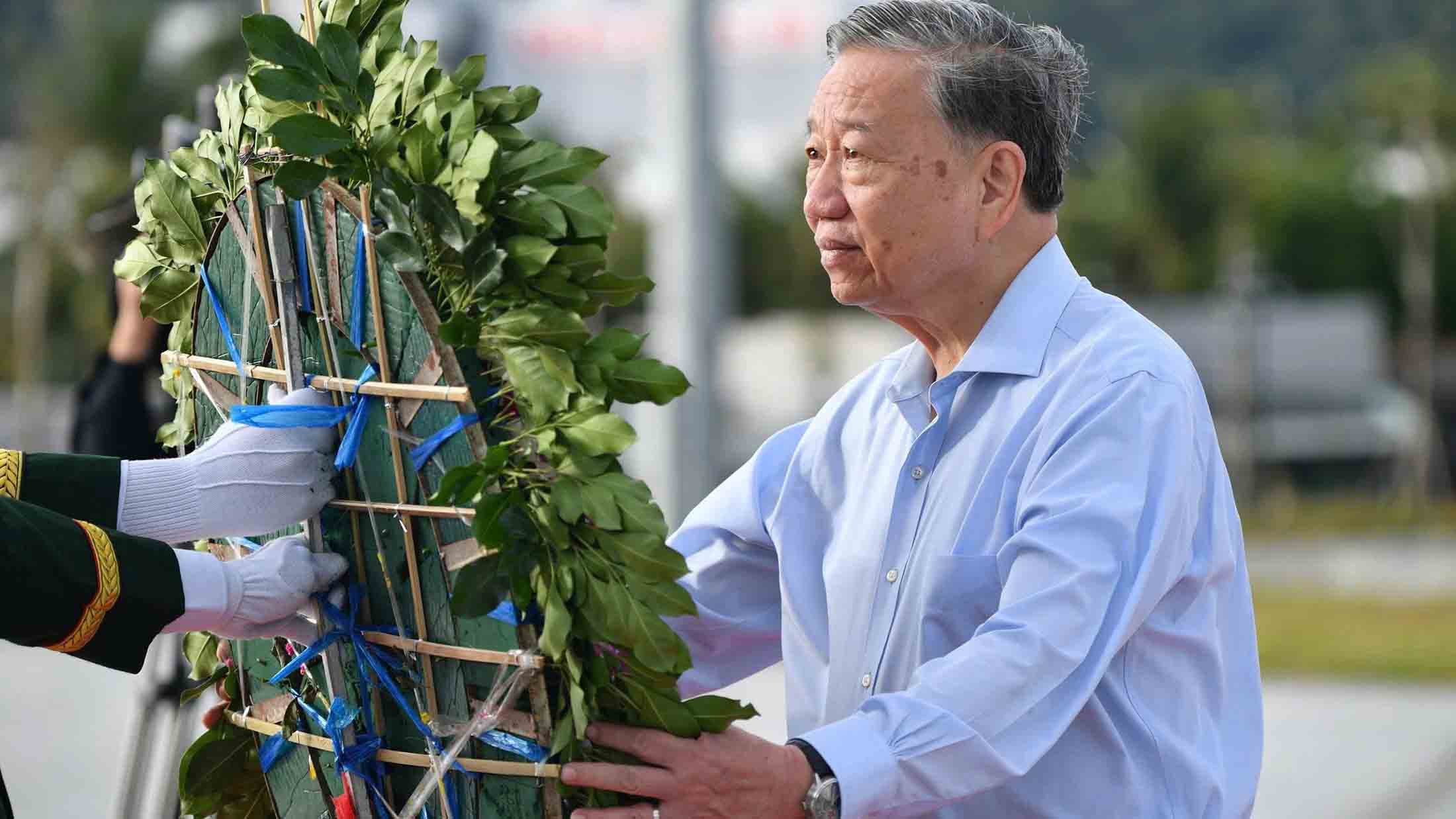 Trong không khí trang nghiêm, xúc động, Tổng Bí thư Tô Lâm và đoàn công tác đã thành kính dâng hoa, dâng hương tưởng niệm, bày tỏ lòng biết ơn vô hạn trước công lao to lớn của Chủ tịch Hồ Chí Minh và các Anh hùng liệt sĩ đã anh dũng hy sinh vì độc lập, tự do của Tổ quốc, vì hạnh phúc của nhân dân./.