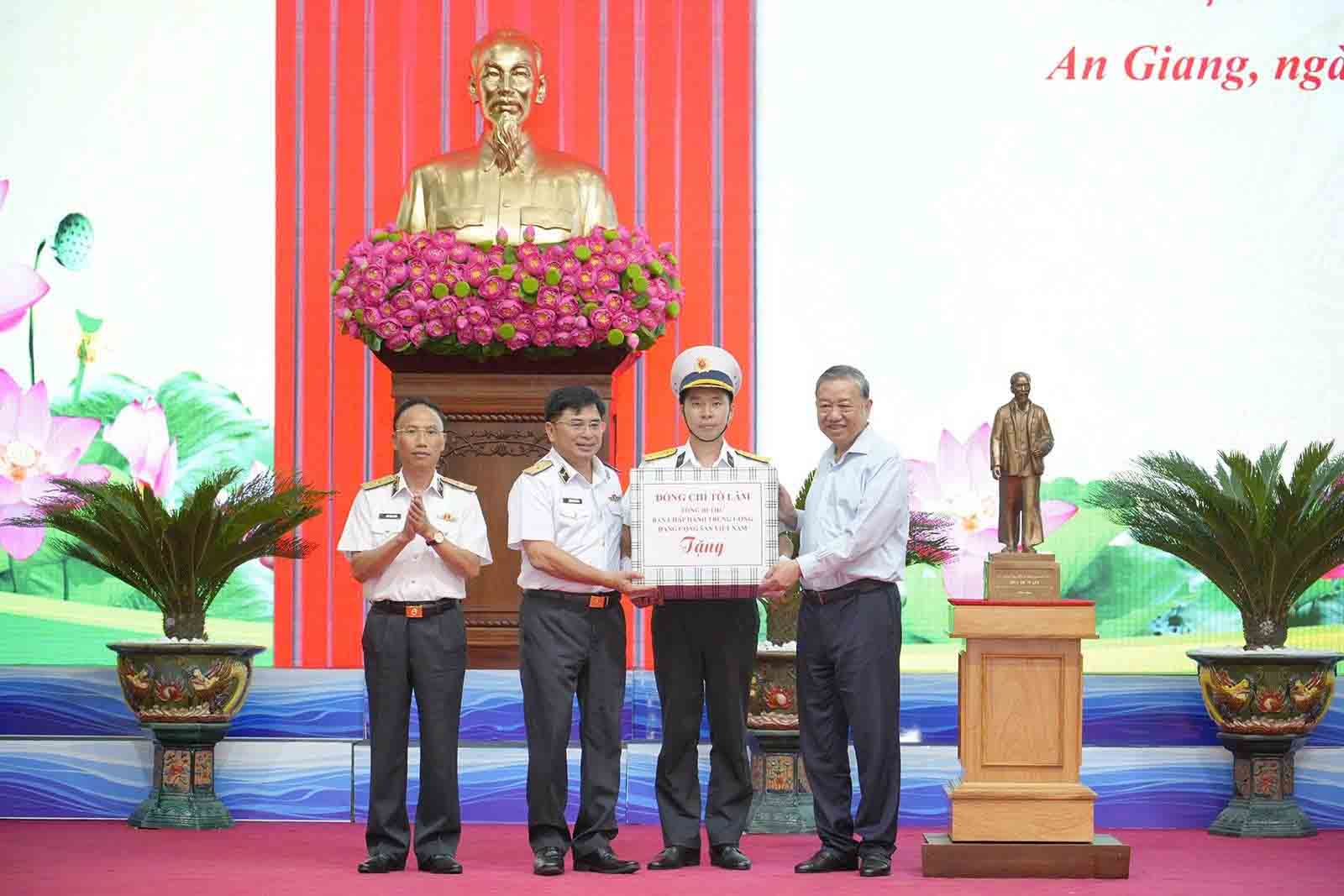 Khẳng định Đảng và Nhà nước luôn quan tâm xây dựng Quân đội và Quân chủng Hải quân ngày càng lớn mạnh, Tổng Bí thư Tô Lâm bày tỏ tin tưởng cán bộ, chiến sĩ Hải quân sẽ tiếp tục phát huy truyền thống anh hùng, vượt qua khó khăn, thử thách, hoàn thành xuất sắc mọi nhiệm vụ được giao, góp phần bảo vệ vững chắc chủ quyền biển đảo thiêng liêng của Tổ quốc, xứng đáng với niềm tin yêu của Đảng, Nhà nước và nhân dân./.