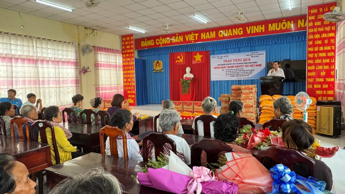 Theo đó có 100 phần quà được trao cho người khuyết tật thuộc diện hộ nghèo, cận nghèo, người dân tộc Khmer có hoàn cảnh đặc biệt khó khăn. Mỗi phần quà trị giá 430 nghìn đồng, gồm gạo, mì gói và tiền mặt. Tổng kinh phí đợt trao quà là 43 triệu đồng do các mạnh thường quân phường Long Xuyên, tỉnh An Giang hỗ trợ.