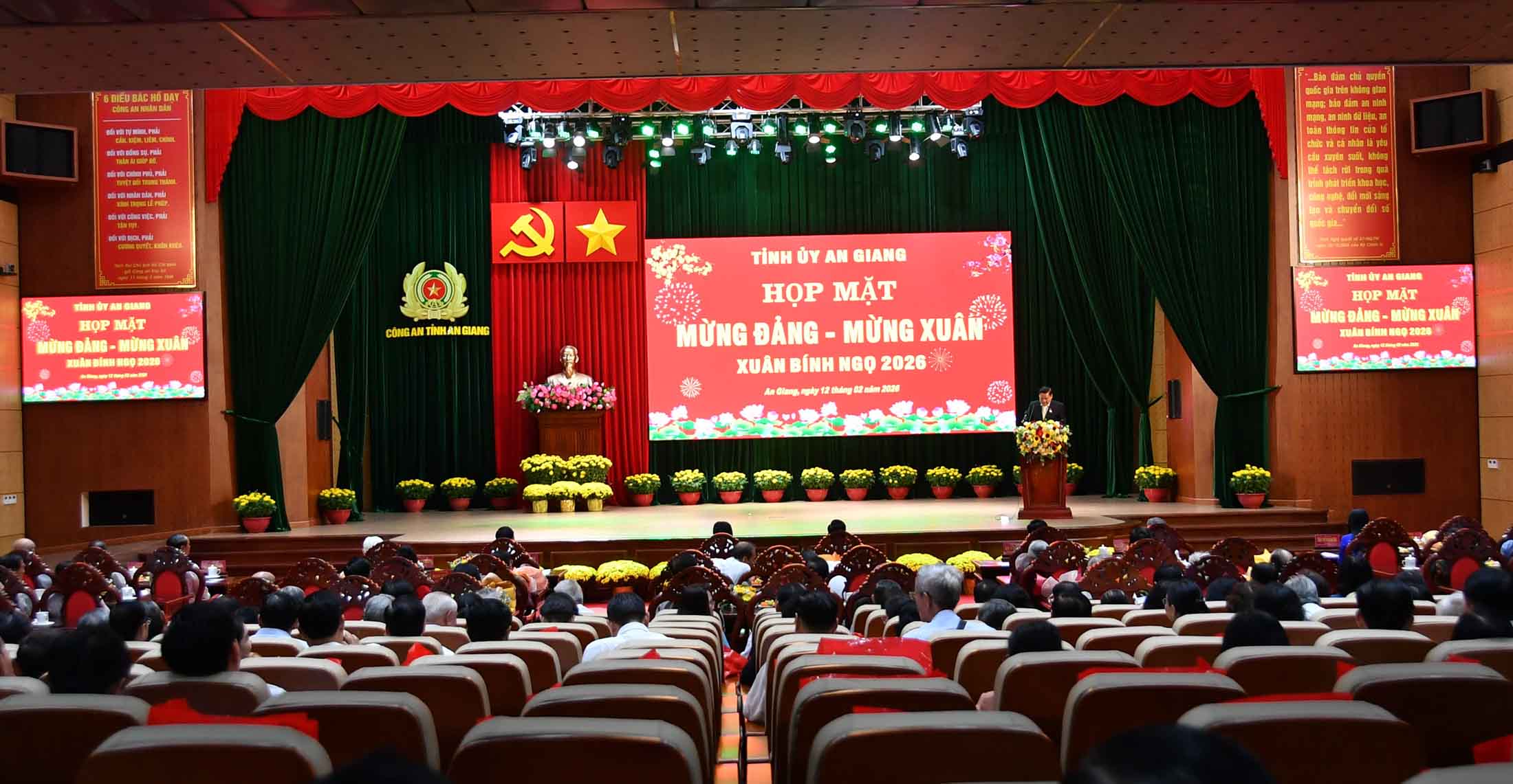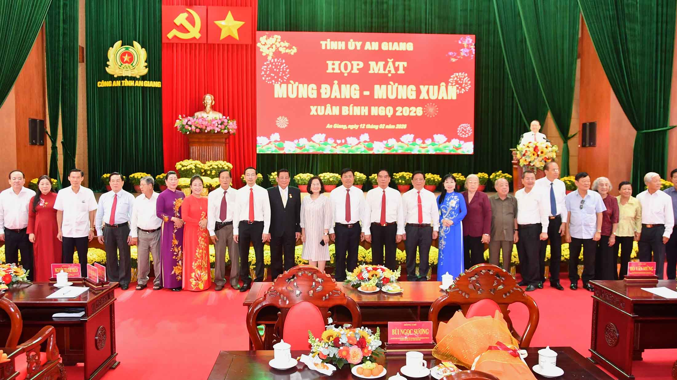 (Cổng TTĐT tỉnh AG)-Sáng 12/02, Ban Thường vụ Tỉnh ủy An Giang tổ chức họp mặt các đồng chí Ủy viên Ban Chấp hành Đảng bộ tỉnh các khóa và lễ trao Huy hiệu Đảng đợt 3/2 nhân kỷ niệm 96 năm Ngày thành lập Đảng Cộng sản Việt Nam, mừng xuân Bính Ngọ 2026.