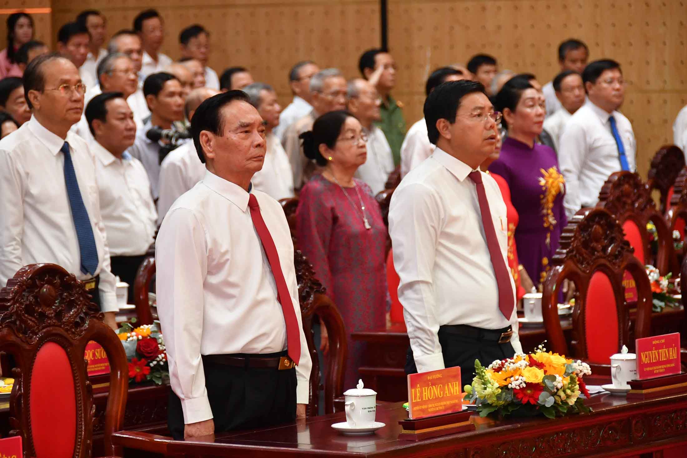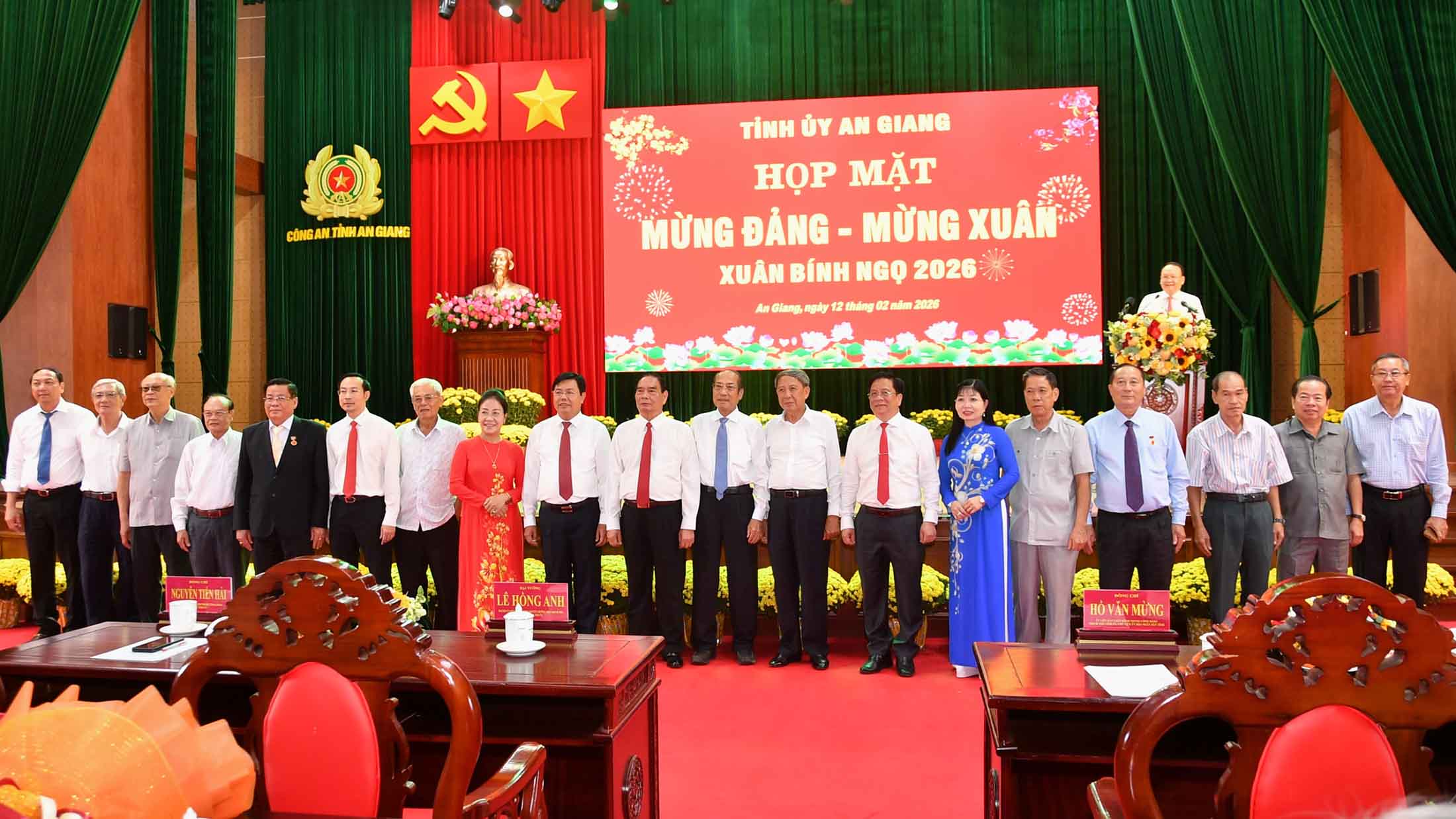 Dự họp mặt có Đại tướng Lê Hồng Anh, nguyên Ủy viên Bộ Chính trị, nguyên Thường trực Ban Bí thư Trung ương Đảng; các đồng chí Nguyễn Tiến Hải, Ủy viên Ban Chấp hành Trung ương Đảng, Bí thư Tỉnh ủy An Giang; Nguyễn Thanh Nhàn, Phó Bí thư Thường trực Tỉnh ủy, Chủ tịch HĐND tỉnh An Giang; Hồ Văn Mừng, Ủy viên Ban Chấp hành Trung ương Đảng, Phó Bí thư Tỉnh ủy, Chủ tịch UBND tỉnh An Giang; Trần Thị Thanh Hương, Phó Bí thư Tỉnh ủy, Trưởng đoàn đại biểu Quốc hội tỉnh An Giang, Chủ tịch Ủy ban MTTQ Việt Nam tỉnh; Lâm Minh Thành, Phó Bí thư Tỉnh ủy An Giang cùng các đồng chí nguyên Thường trực Tỉnh ủy, HĐND, UBND, nguyên Tỉnh ủy viên các khóa…