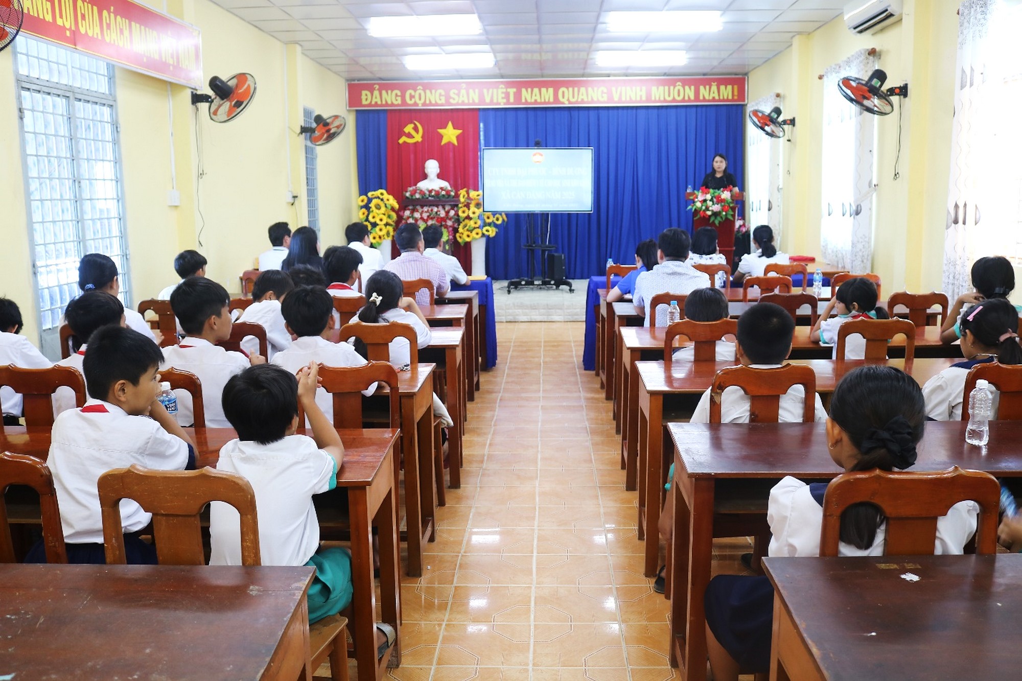 Tại chương trình, đại diện Công ty TNHH Đại Phước- Bình Dương đã trao 01 căn nhà đại đoàn kết cho hộ Huỳnh Ngọc Cà, ngụ ấp Hòa Lợi 1, xã Cần Đăng và 50 thẻ BHYT cho học sinh có hoàn cảnh khó khăn Trường Tiểu học Vĩnh Lợi và Trường THCS Vĩnh Lợi. Tổng kinh phí trao tặng gần 92 triệu đồng.