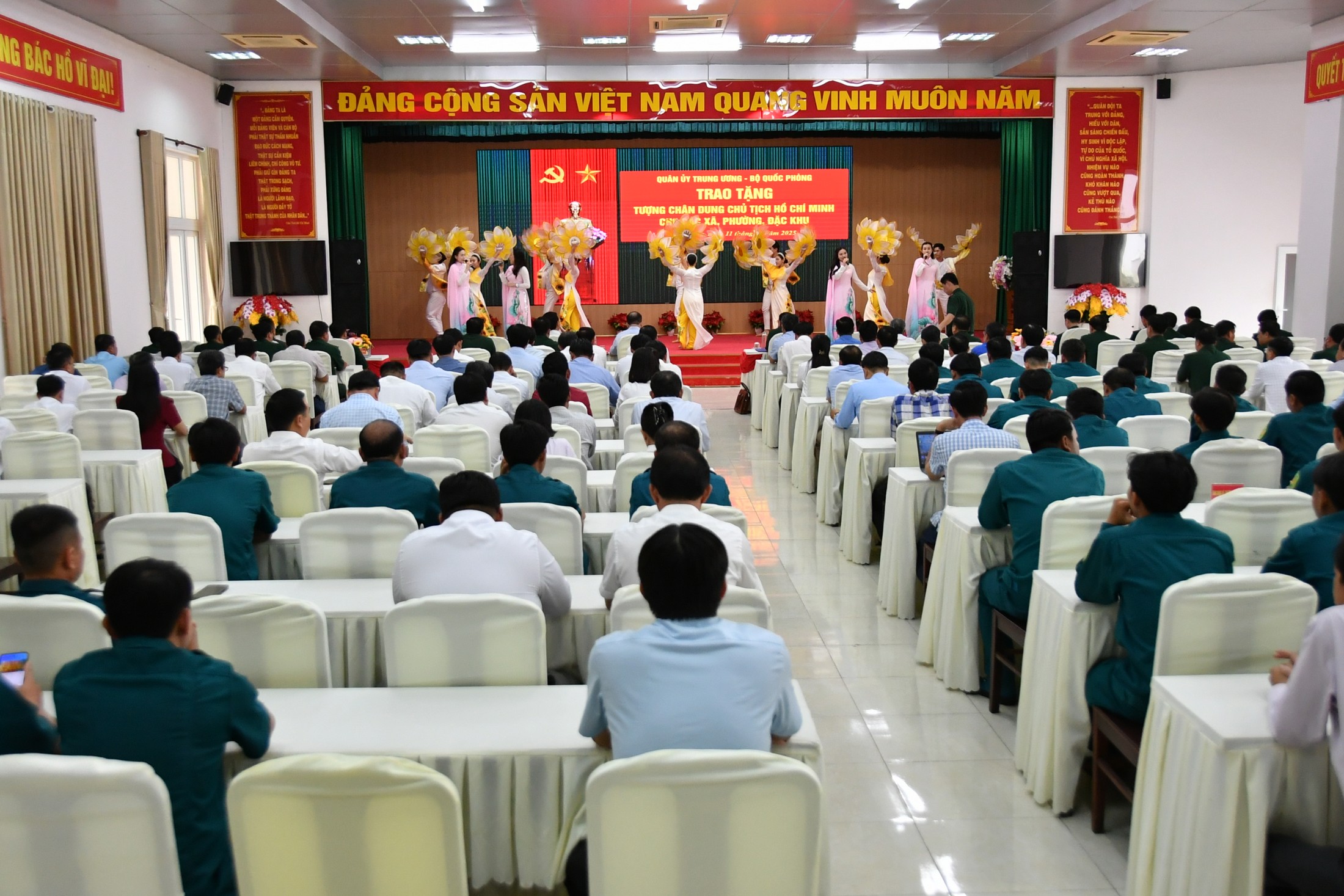 Phát biểu tại buổi lễ, Thiếu tướng Nguyễn Văn Tiền, Phó tư lệnh Quân khu 9 nhấn mạnh: “Việc tổ chức trao tặng tượng chân dung Chủ tịch Hồ Chí Minh kính yêu cho Ủy ban nhân dân các xã, phường, đặc khu trên địa bàn tỉnh An Giang là một sự kiện có ý nghĩa sâu sắc về chính trị, văn hóa và tinh thần, thể hiện lòng kính yêu vô hạn, sự quan sâu sắc của cán bộ, chiến sĩ Lực lượng vũ trang Quân khu 9 và nhân dân các địa phương trên địa bàn đồng bằng sông Cửu Long đối với vị lãnh tụ vĩ đại của dân tộc, Anh hùng giải phóng dân tộc, Danh nhân văn hóa thế giới, người Cha thân yêu của các lực lượng vũ trang nhân dân”. Đồng chí Phó Tư lệnh Quân khu nhấn mạnh việc Bộ Quốc phòng trao tặng tượng chân dung Chủ tịch Hồ Chí Minh cho ủy ban nhân dân các xã, phường, đặc khu trên địa bàn tỉnh An Giang hôm nay là một hành động cụ thể nhằm góp phần lan tỏa sâu rộng giá trị cốt lõi của tư tưởng, đạo đức, phong cách Hồ Chí Minh đến từng cán bộ, đảng viên và nhân dân; cùng củng cố khối đại đoàn kết quân - dân ngày càng bền chặt, vững chắc; khích lệ các địa phương tiếp tục đẩy mạnh phong trào thi đua yêu nước trong lực lượng vũ trang và các tầng lớp nhân dân. Thể hiện truyền thống "Uống nước nhớ nguồn" cao đẹp của dân tộc và sự quan tâm sâu sắc của Bộ Quốc phòng; Bộ Tư lệnh Quân khu 9 đối với các địa phương thuộc tỉnh An Giang – những địa bàn có vị trí chiến lược quan trọng cả về chính trị, kinh tế và quốc phòng an ninh.