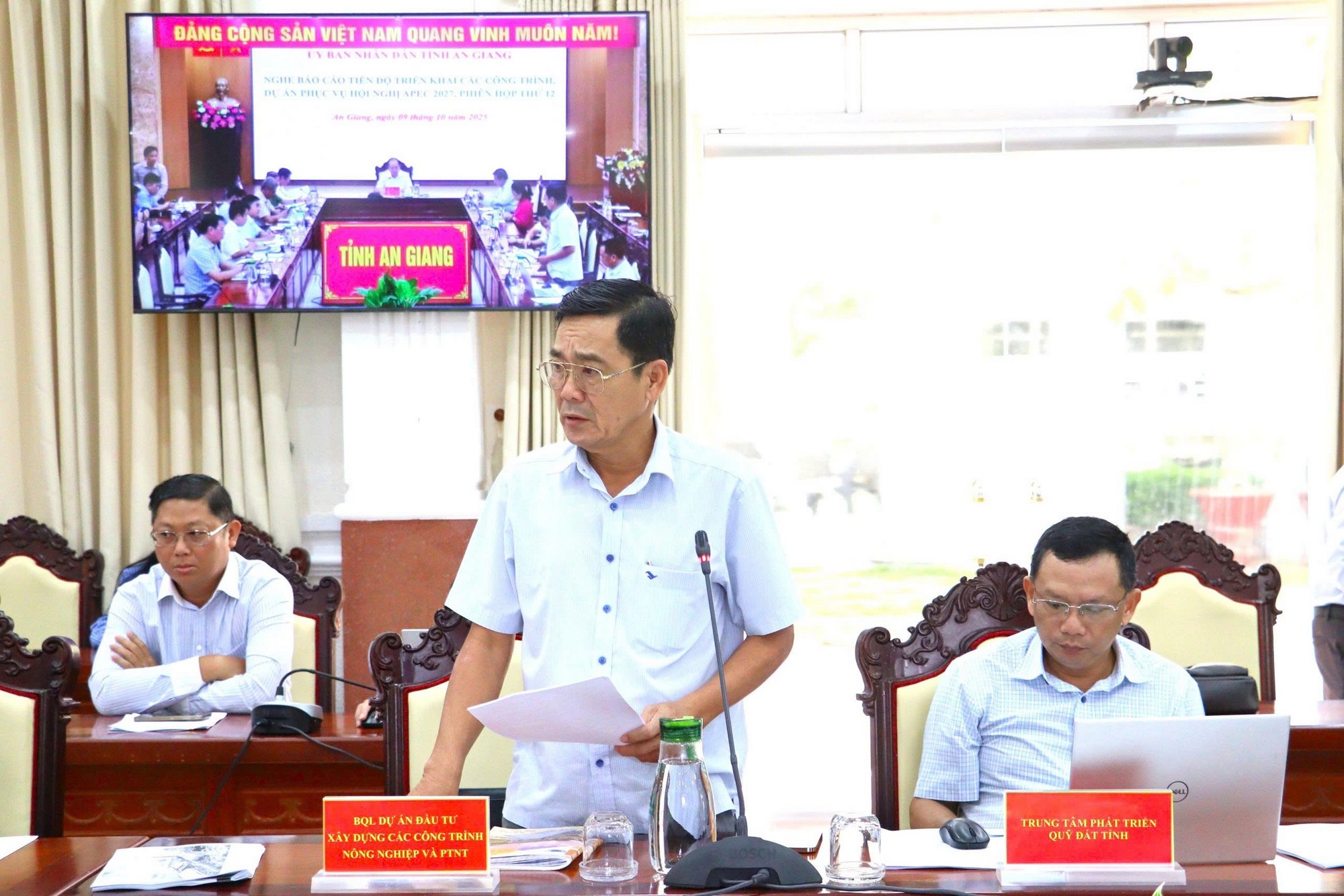 Phát biểu tại buổi làm việc, Chủ tịch UBND tỉnh An Giang Hồ Văn Mừng nhấn mạnh khối lượng công việc triển khai các công trình, dự án phục vụ Hội nghị APEC 2027 rất lớn vì vậy thường trực UBND tỉnh, người đứng đầu các sở, ngành, địa phương phải thực hiện nhiệm vụ với tinh thần cao nhất, trách nhiệm nhất để đảm bảo tiến độ.