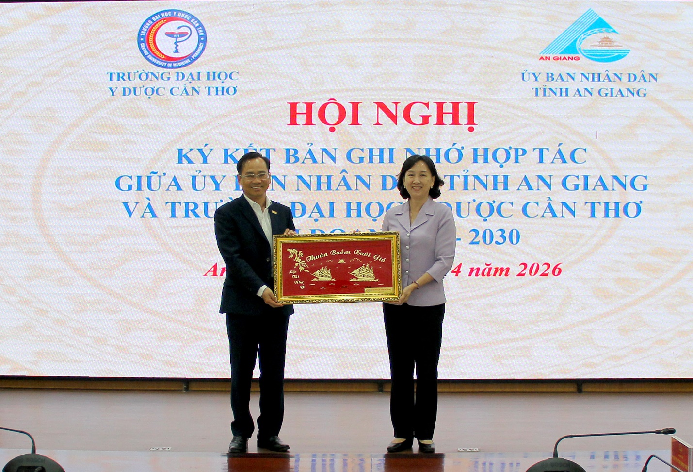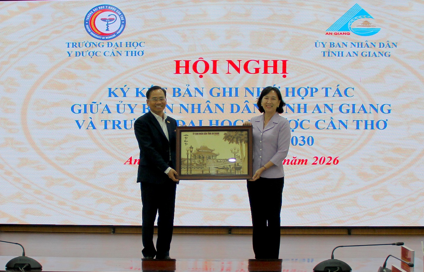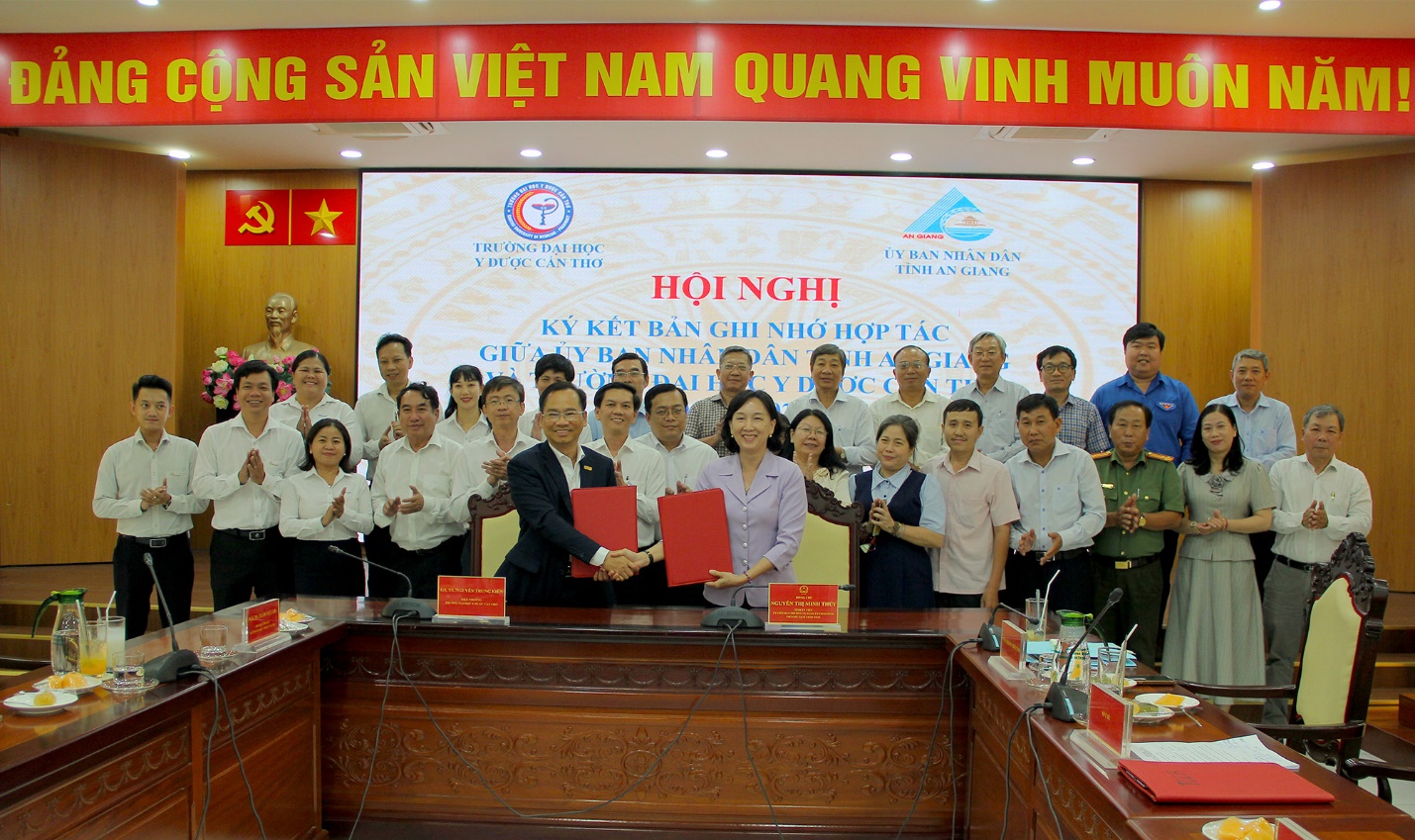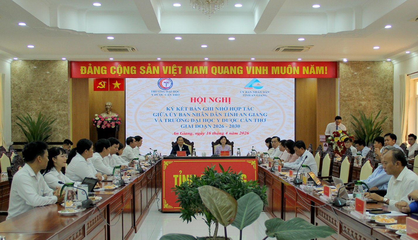 Tại Hội nghị, Ủy ban nhân dân tỉnh An Giang và Trường Đại học Y Dược Cần Thơ đã ký kết bản ghi nhớ hợp tác giai đoạn 2025-2030, nội dung hợp tác tập trung vào các lĩnh vực đào tạo như: Đào tạo đại học, đào tạo sau đại học, bồi dưỡng các lớp ngắn hạn, chức năng nghề nghiệp; Phối hợp trong công tác nghiên cứu khoa học và chuyển giao công nghệ; phối hợp tư vấn, đề xuất đặt hàng nghiên cứu nhiệm vụ khoa học và công nghệ hằng năm; Phối hợp trong công tác khám, chữa bệnh và y tế dự phòng; Phối hợp triển khai các hoạt động phục vụ và hỗ trợ sinh viên tỉnh An Giang đang theo học tại Trường Đại học Y Dược Cần Thơ…