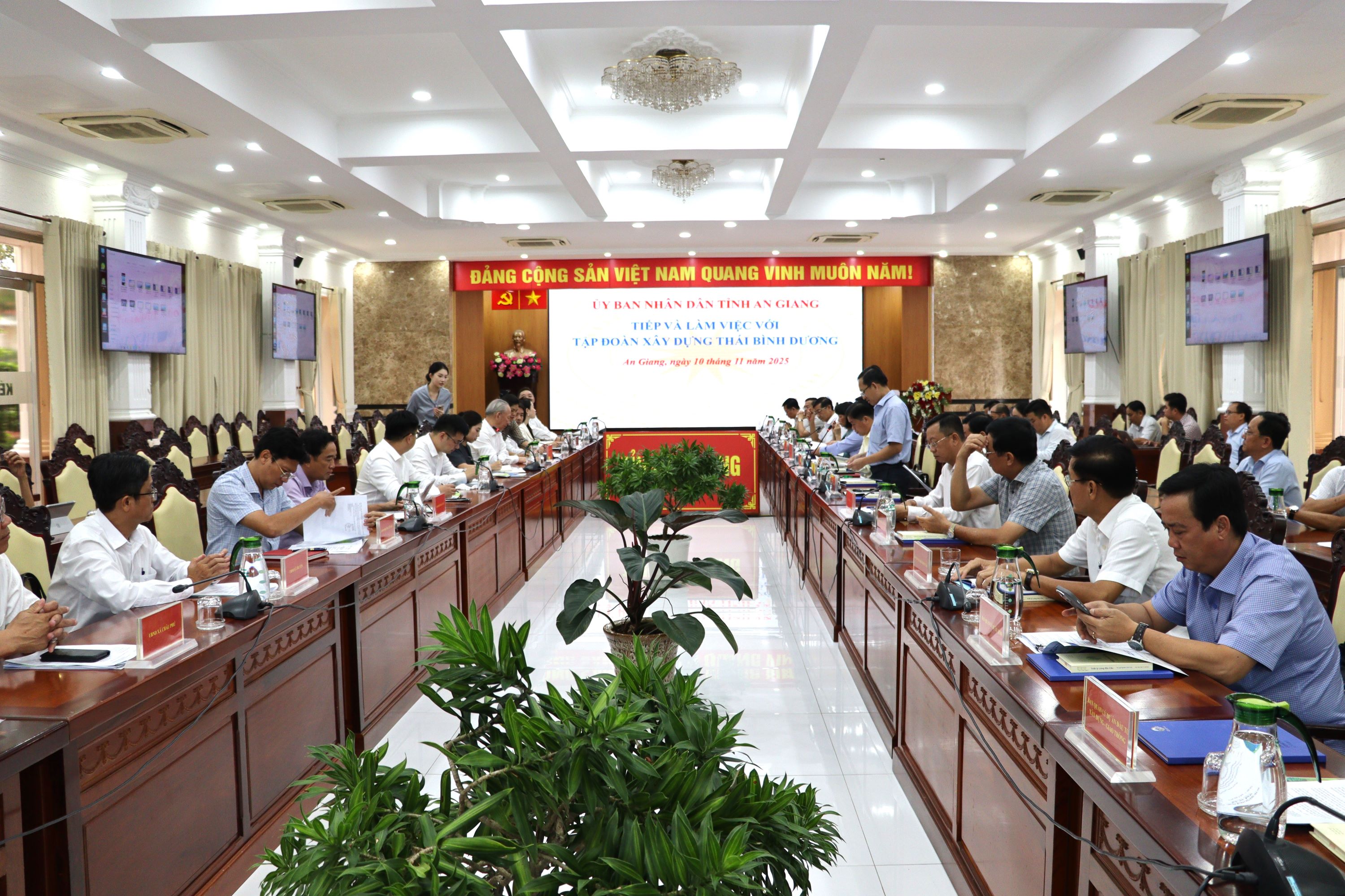 (Cổng TTĐT tỉnh AG) - Chiều 10/11, Ủy viên dự khuyết Ban Chấp hành Trung ương Đảng, Phó Bí thư Tỉnh ủy, Chủ tịch UBND tỉnh Hồ Văn Mừng tiếp và làm việc với Tập đoàn Xây dựng Thái Bình Dương, trao đổi, hợp tác trong các lĩnh vực đầu tư, xây dựng, vận hành và quy hoạch phát triển cơ sở hạ tầng đô thị trên địa bàn tỉnh.