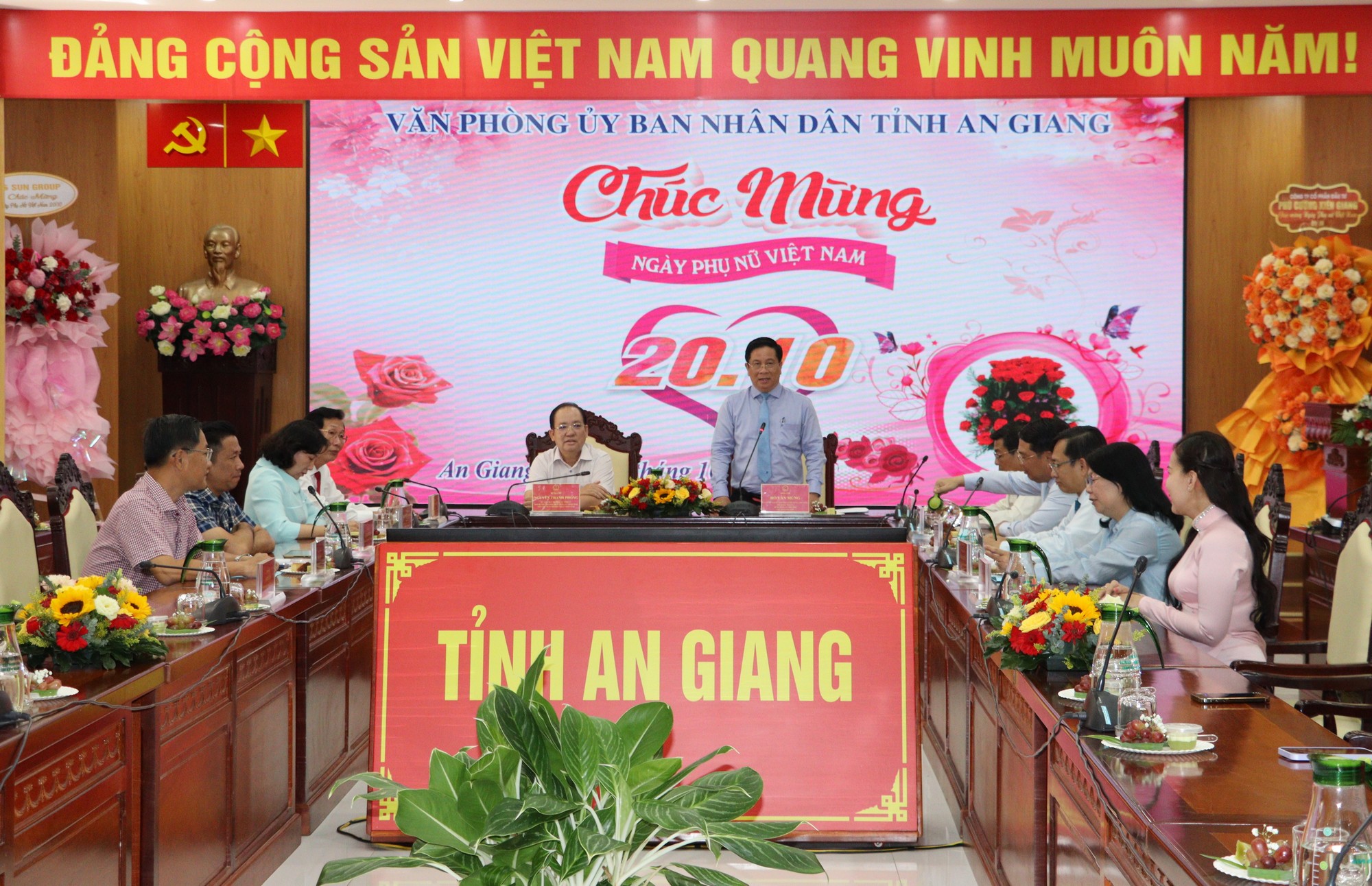 Phát biểu tại buổi họp mặt, Chủ tịch UBND tỉnh Hồ Văn Mừng gửi lời chúc mừng 20/10 tốt đẹp nhất đến toàn thể nữ công chức, viên chức, người lao động đang công tác tại Văn phòng UBND tỉnh An Giang.