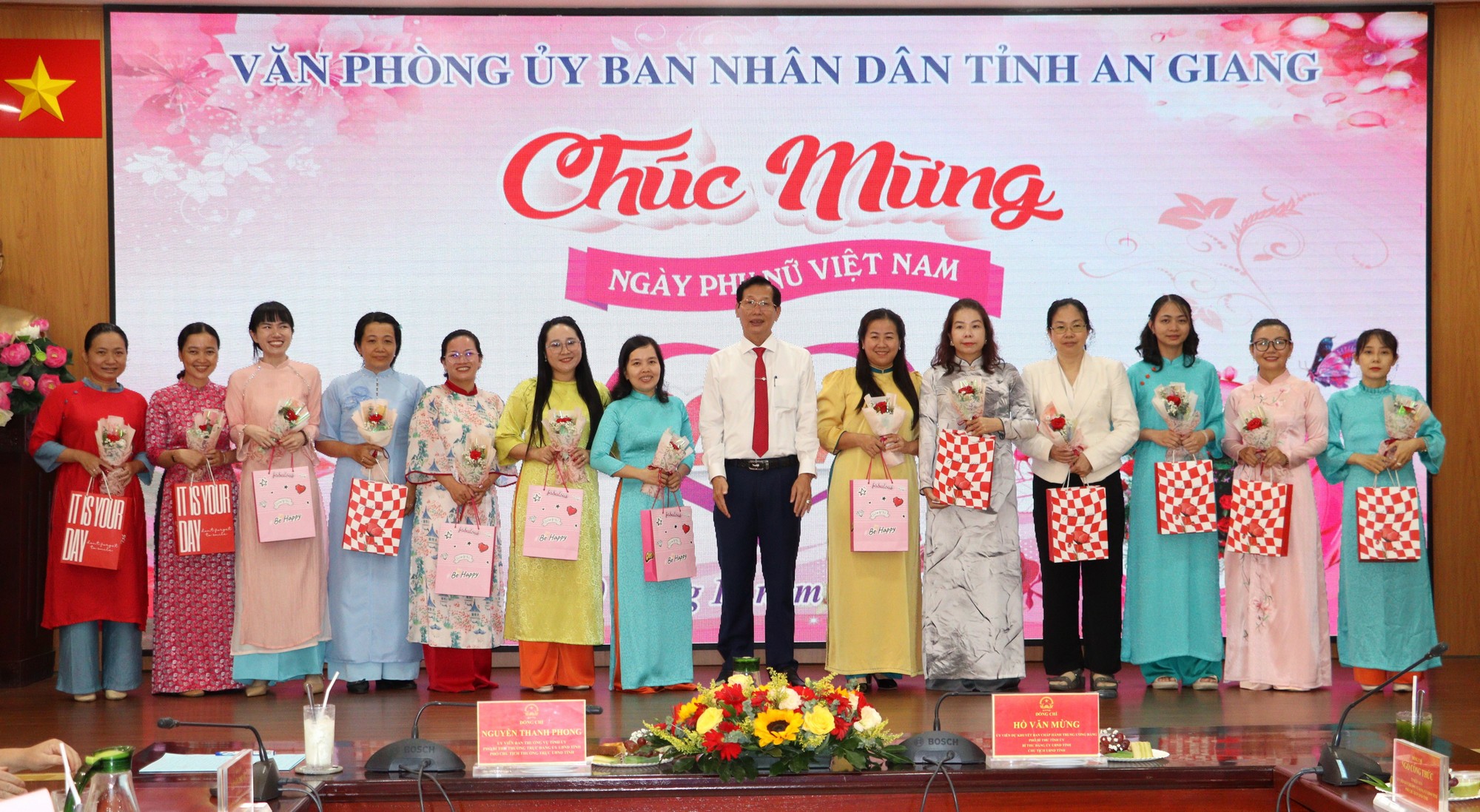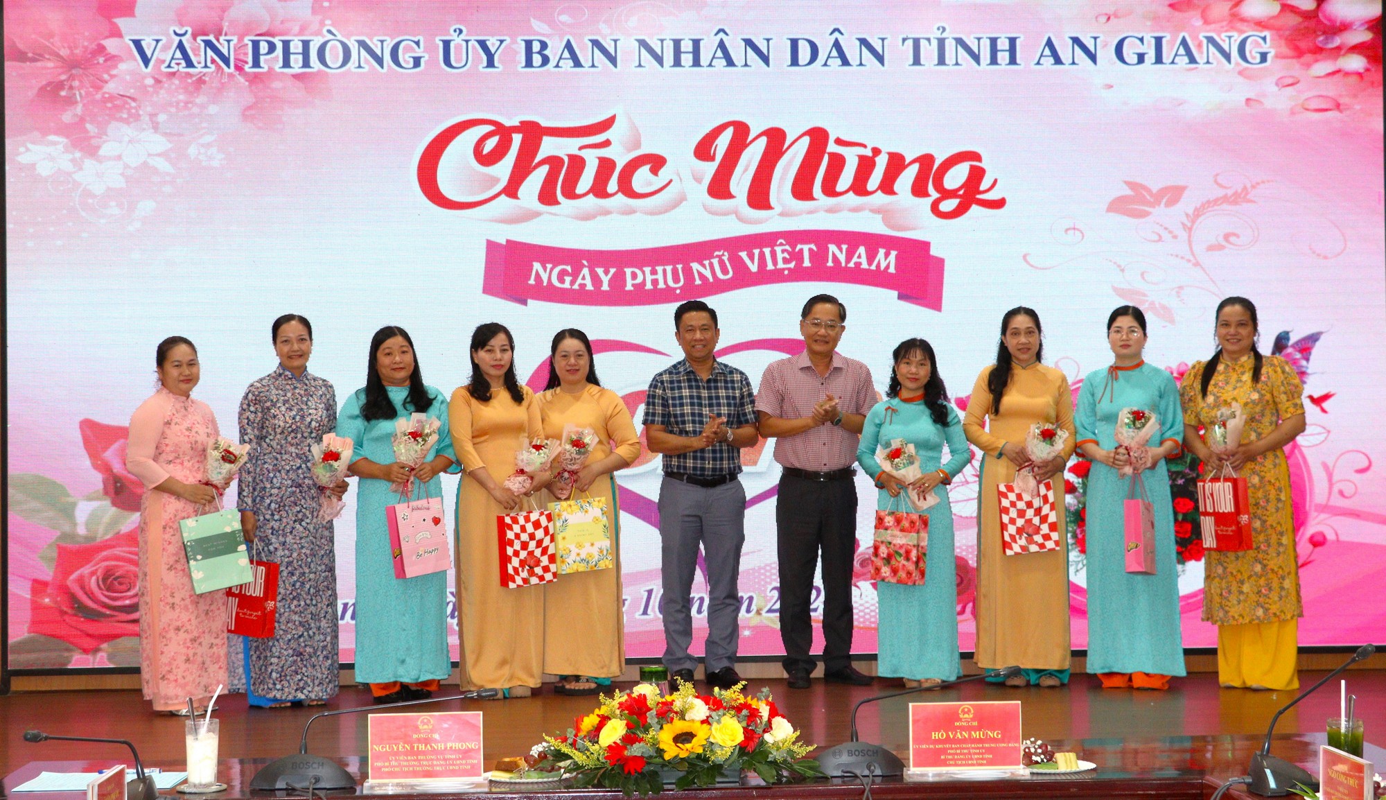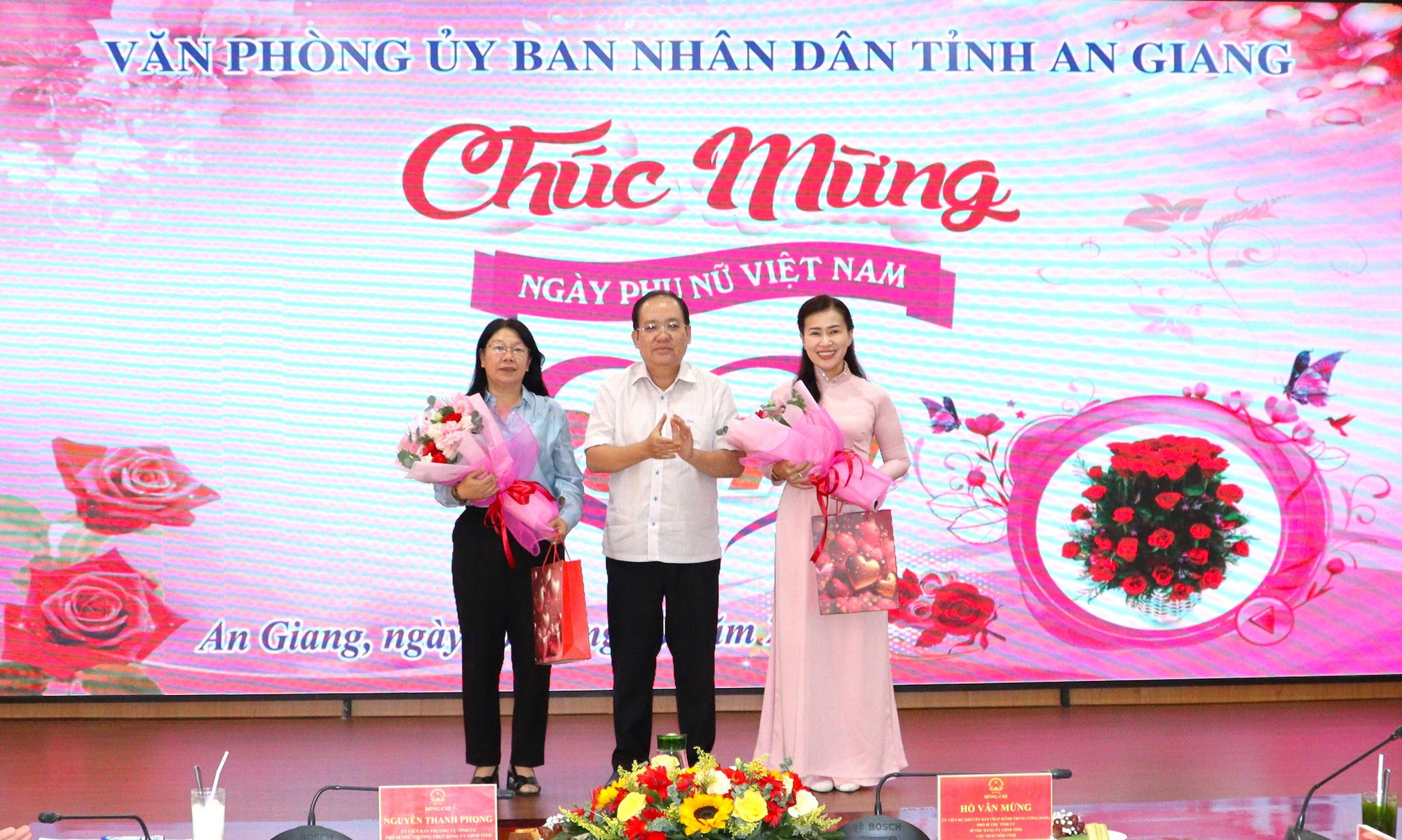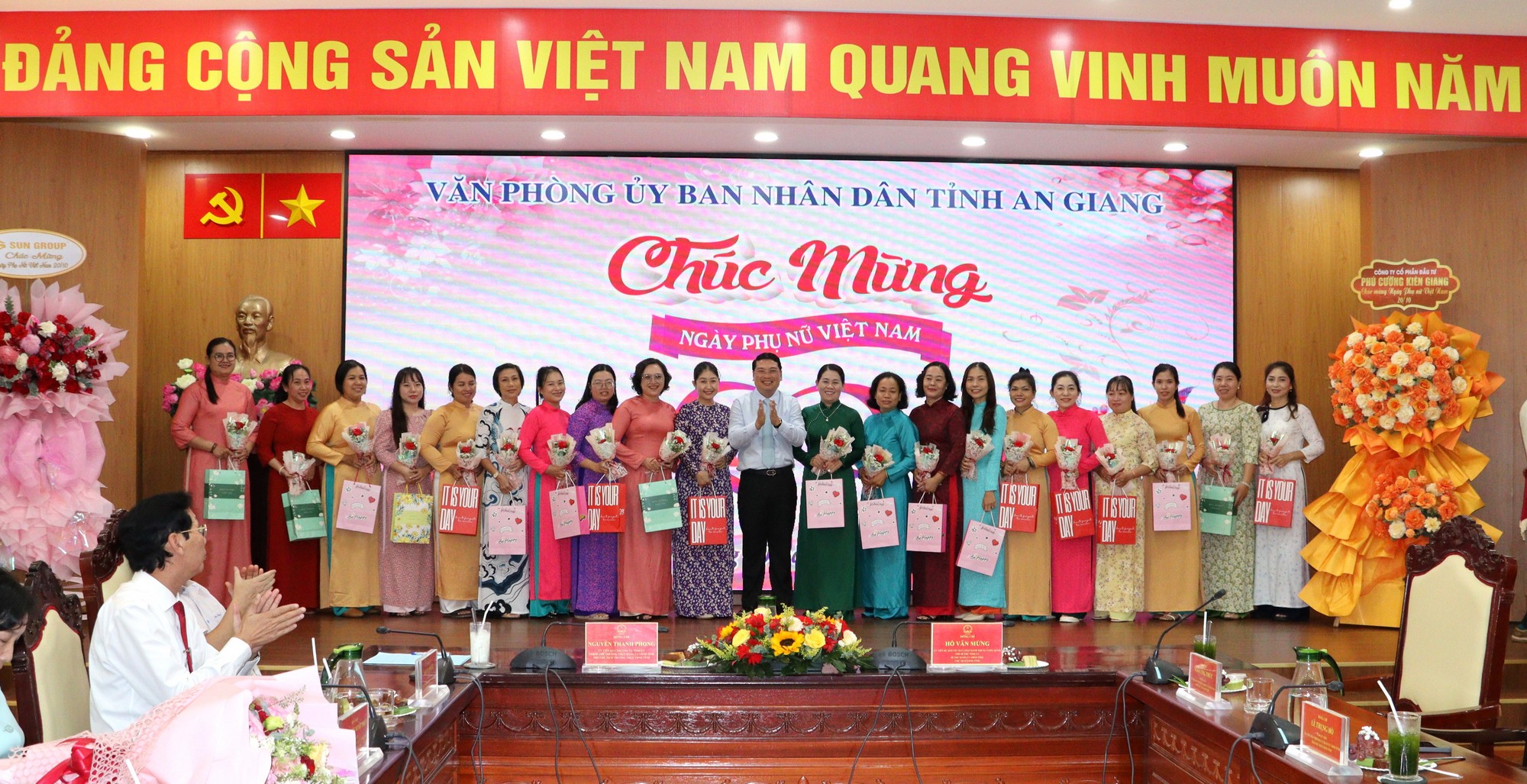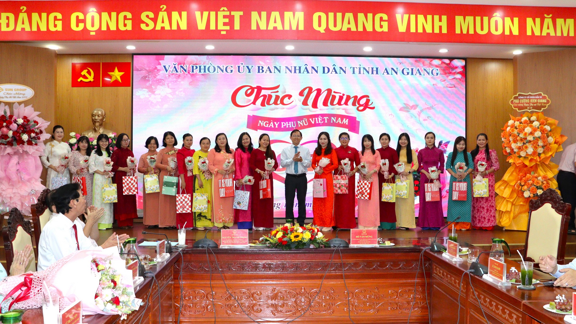Chủ tịch UBND tỉnh Hồ Văn Mừng ghi nhận, biểu dương và gửi lời cảm ơn đến tất cả nữ công chức, viên chức, người lao động đang công tác tại Văn phòng UBND tỉnh An Giang trong suốt thời gian qua đã luôn cố gắng, nỗ lực, hoàn thành tất cả các nhiệm vụ được giao.