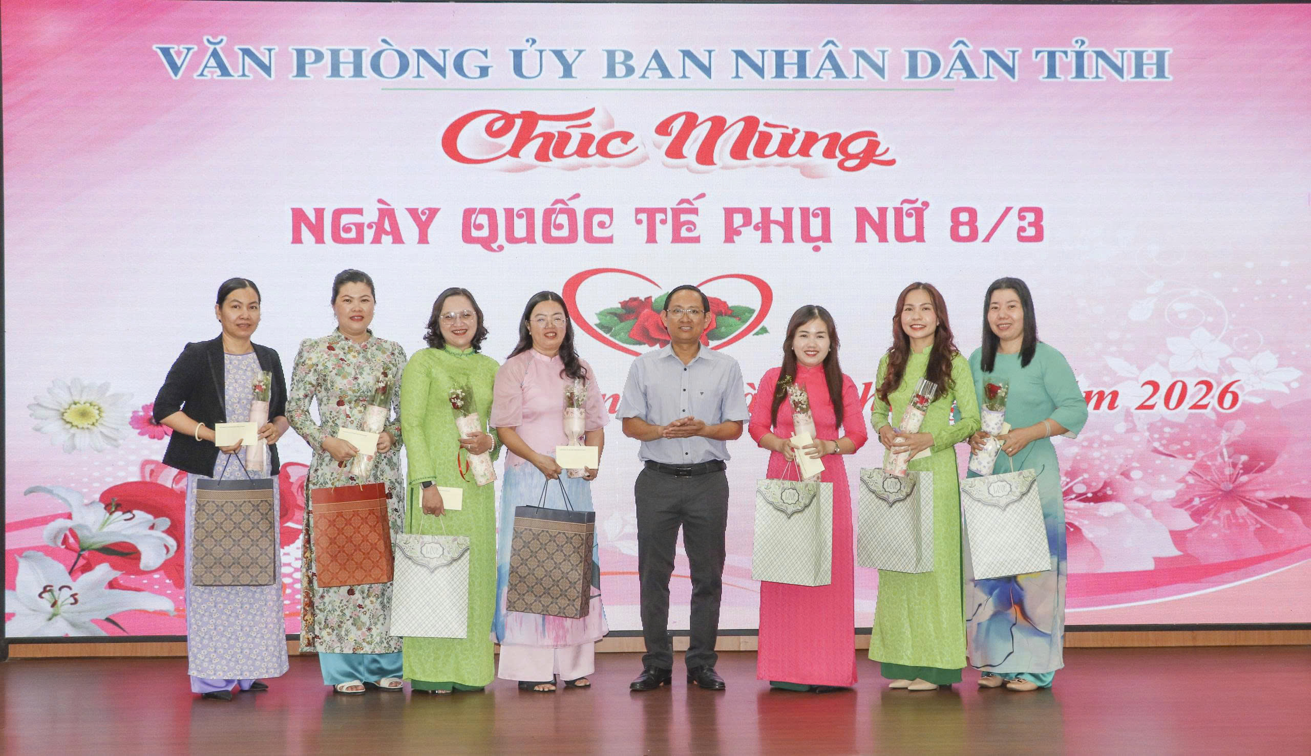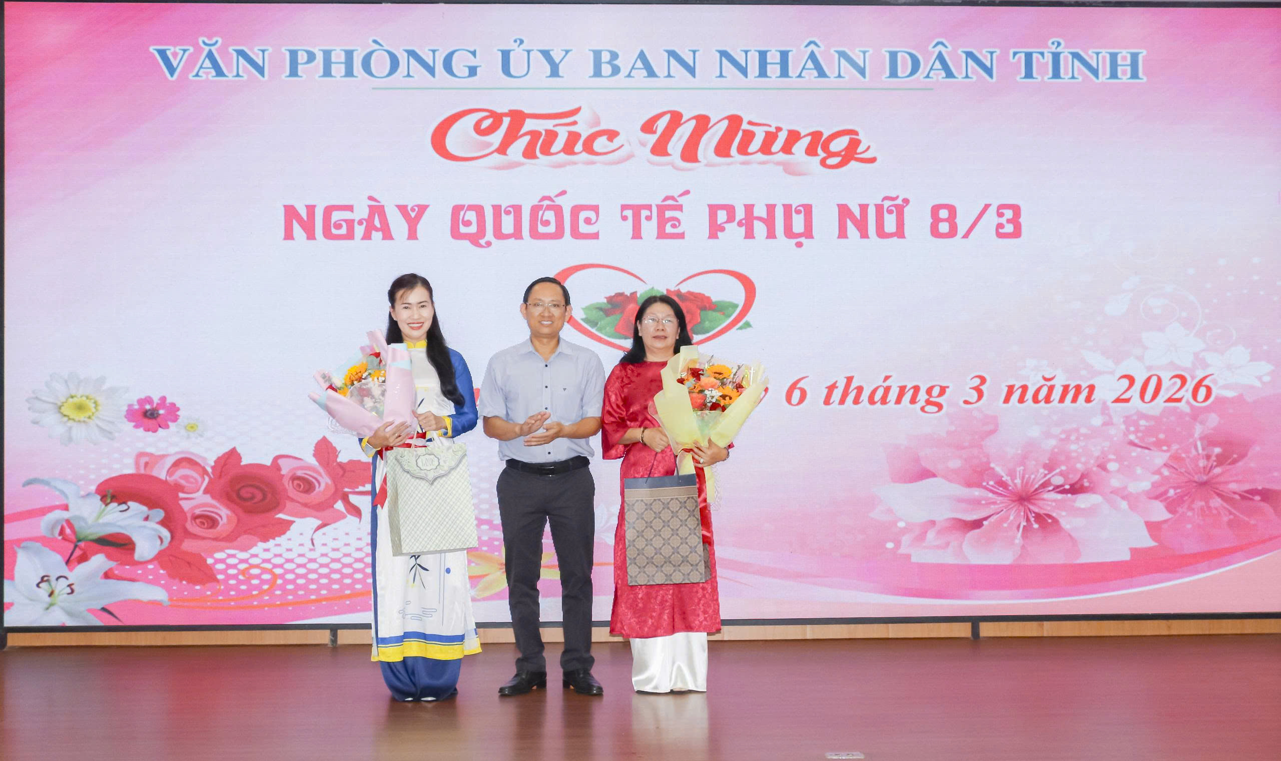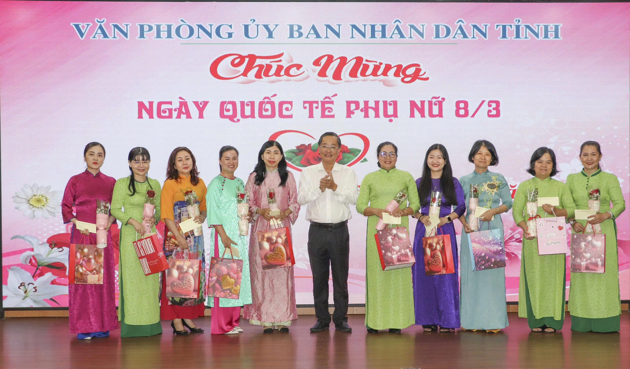 Tại buổi họp mặt, Văn phòng UBND tỉnh ôn lại truyền thống 116 năm ngày Quốc tế phụ nữ 8/3 và 1986 năm khởi nghĩa Hai Bà Trưng. Dịp này, Văn phòng UBND tỉnh đã tặng hoa và quà chúc mừng cho nữ công chức, viên chức, người lao động.