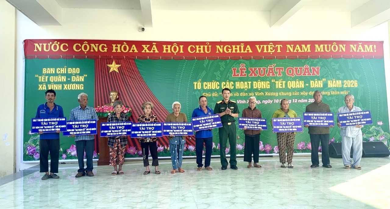 Tại lễ xuất quân, Bộ Chỉ huy Quân sự tỉnh trao tặng bảng tượng trưng 10 căn nhà Đại đoàn kết cho các hộ nghèo khó khăn về nhà ở. Ban Chỉ đạo chương trình tặng hoa cho các đơn vị tham gia các hoạt động Tết Quân – Dân năm 2026.
